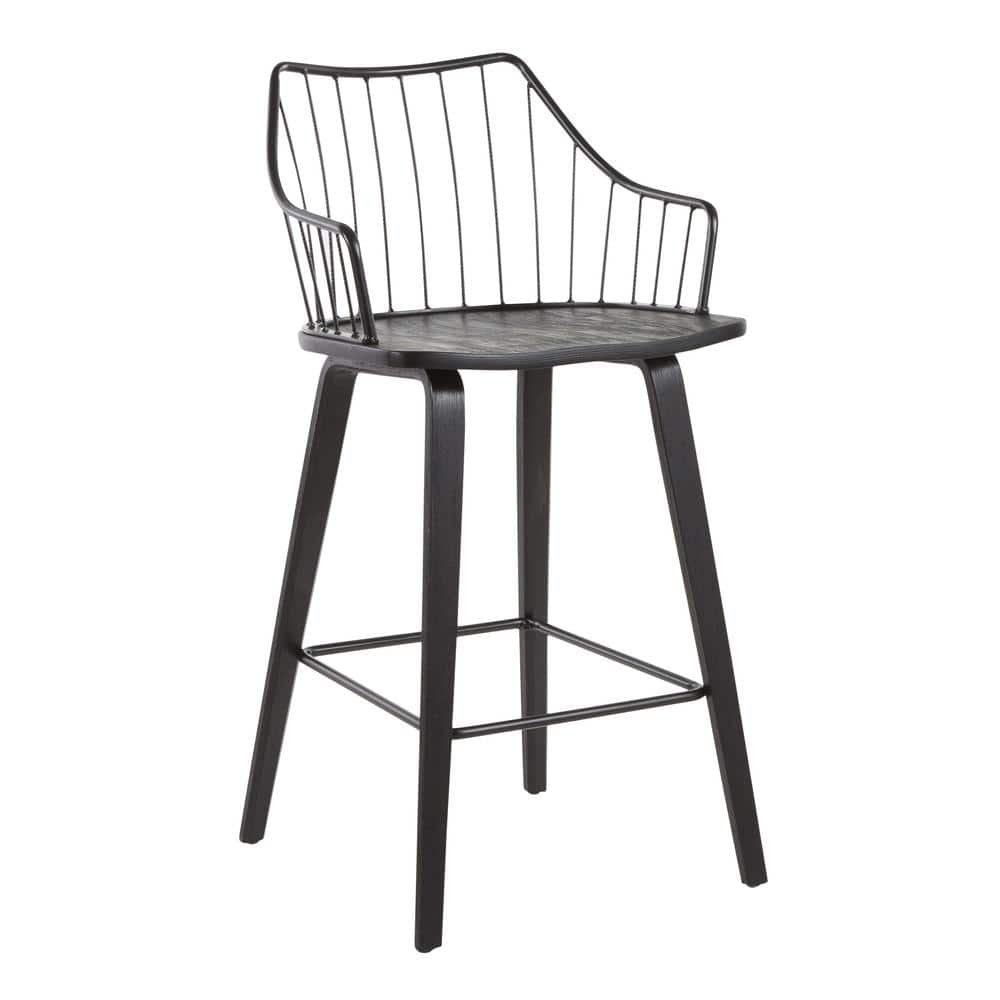 531050 LUMISOURCE - Winston 26 in. Spindle Back Black Wood and Black Metal Counter Height Stool.