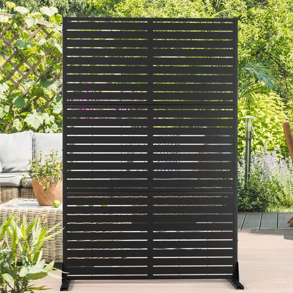 531065 DOVELINA - 72 in.H x 47 in.W Galvanized Metal Wall Sculptures Outdoor Privacy Screens Garden Fence Louvered in Black