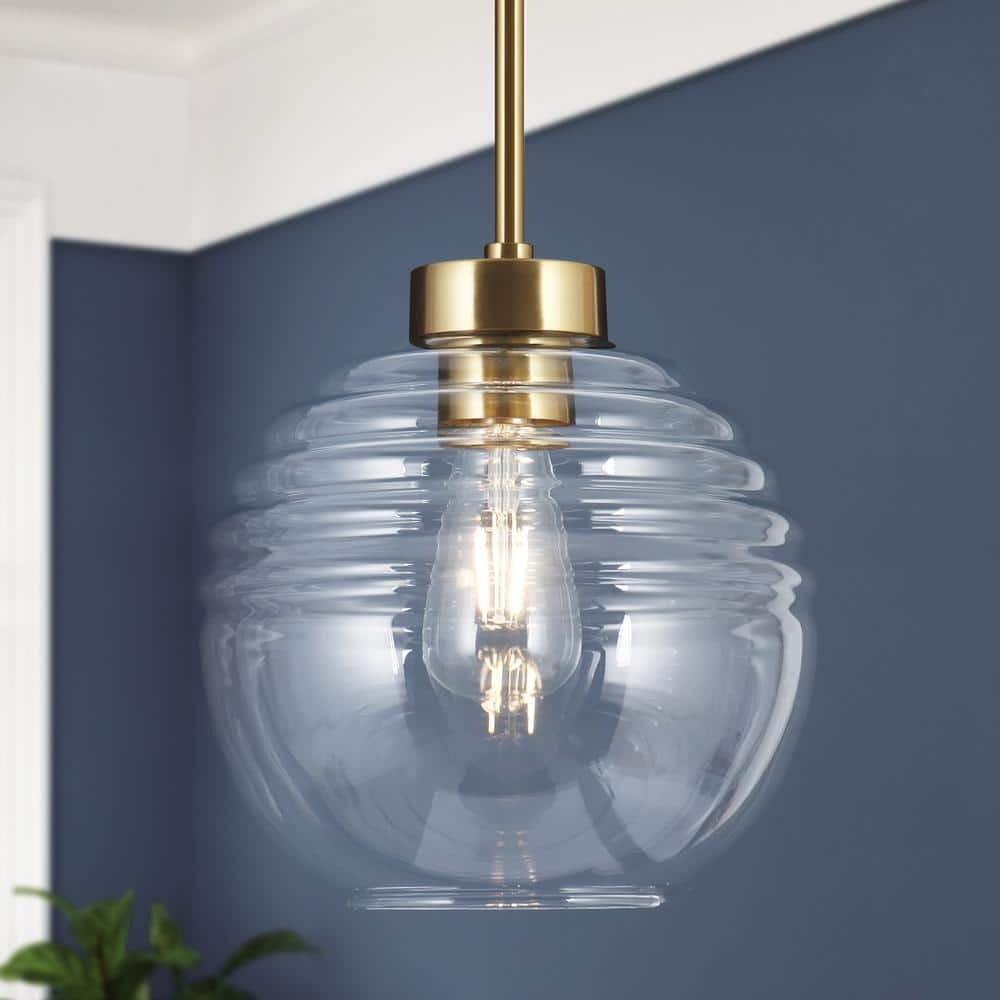 531069 UOLFIN - Modern Kitchen Island Pendant Light Bubble 1-Light Brass Gold Pendant Lighting with Clear Striped Glass Shade