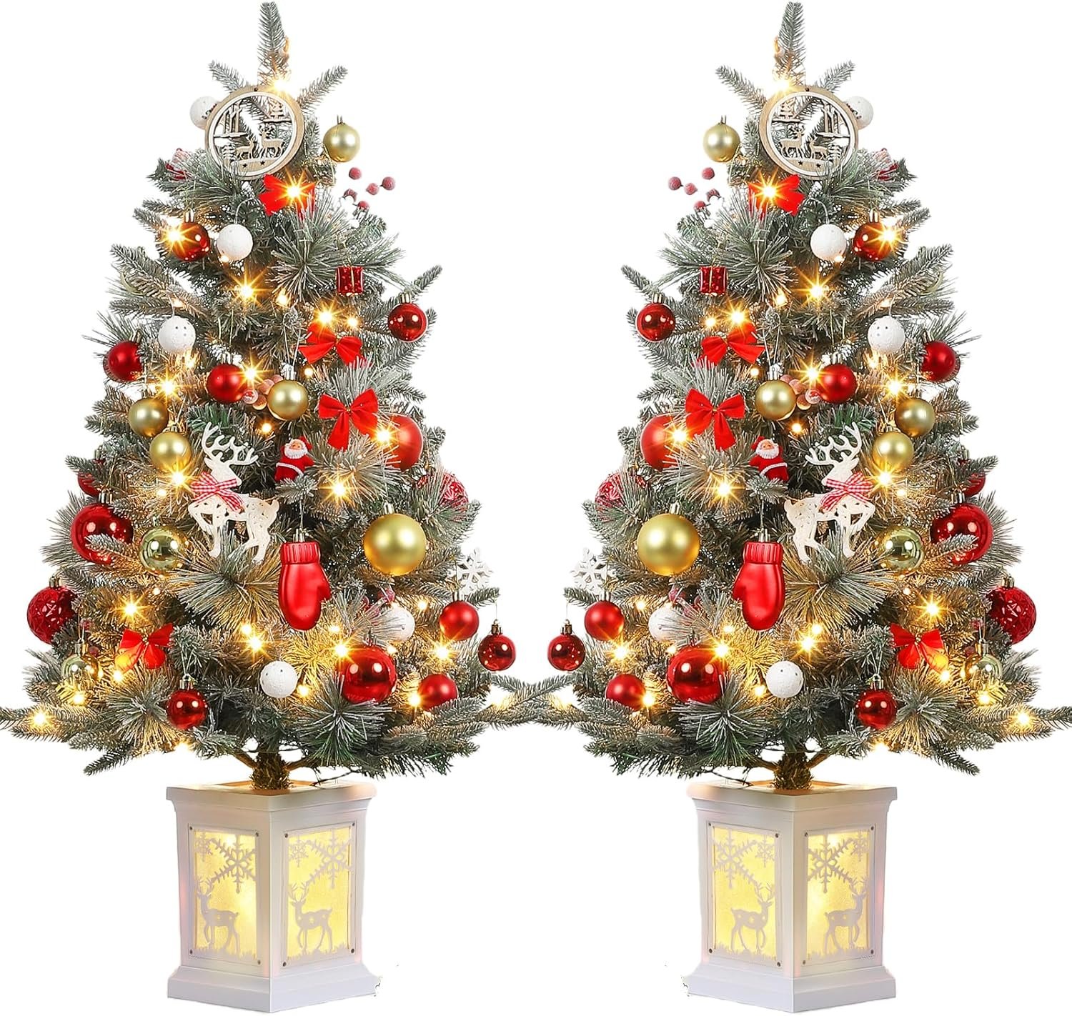 531091 GARVEEHOME - GarveeHome 3 ft Prelit Christmas Tree with 78 Warm Lights & Red Berry, Artificial Xmas Trees with Elk Light Box Base, for Home,
