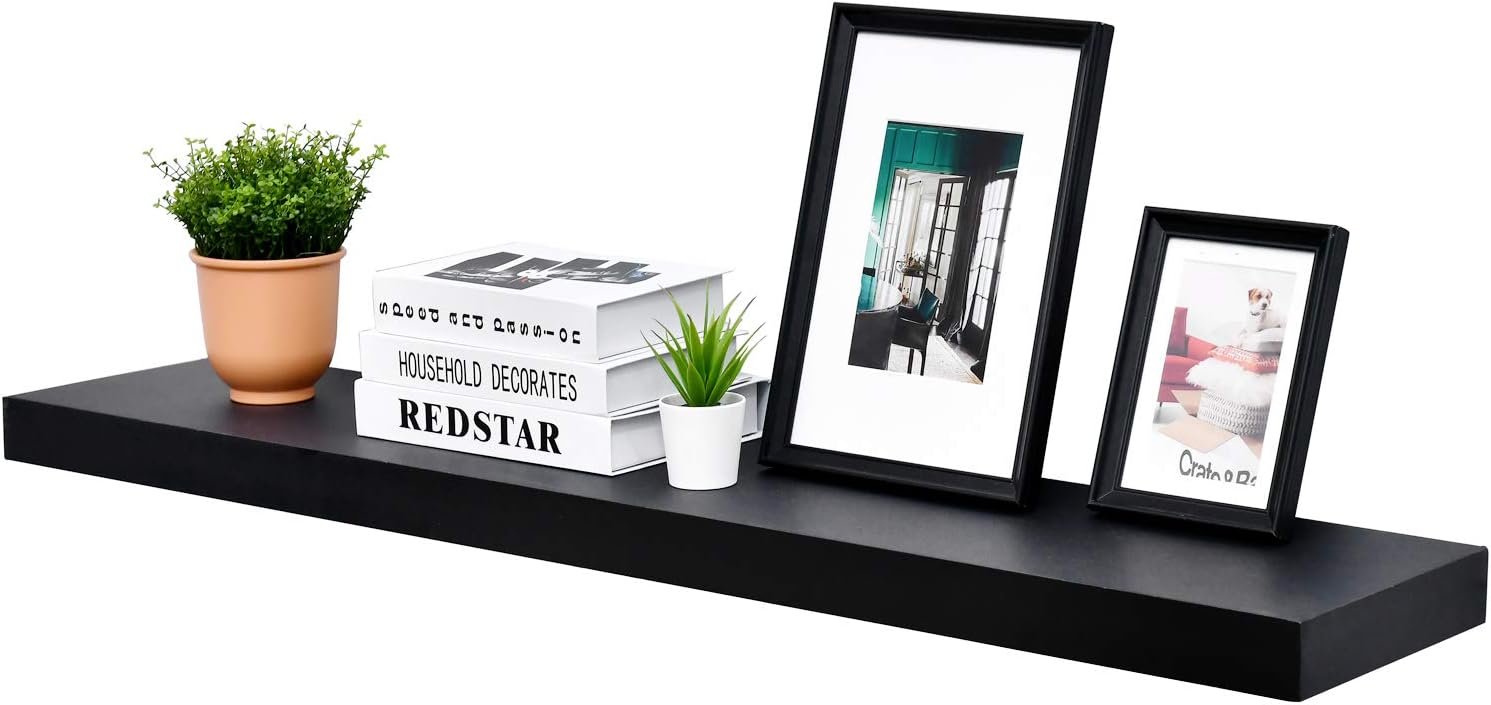 532053 DANYA B - Repose 23.6 in. W x 5.75 in. D x 5.6 in. Display Photo Ledge Decorative Wall Shelf Set of 2-Black Back/Chestnut Shelf