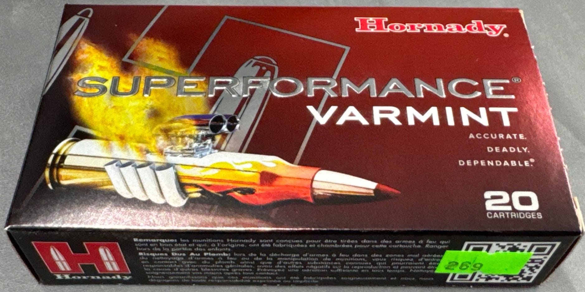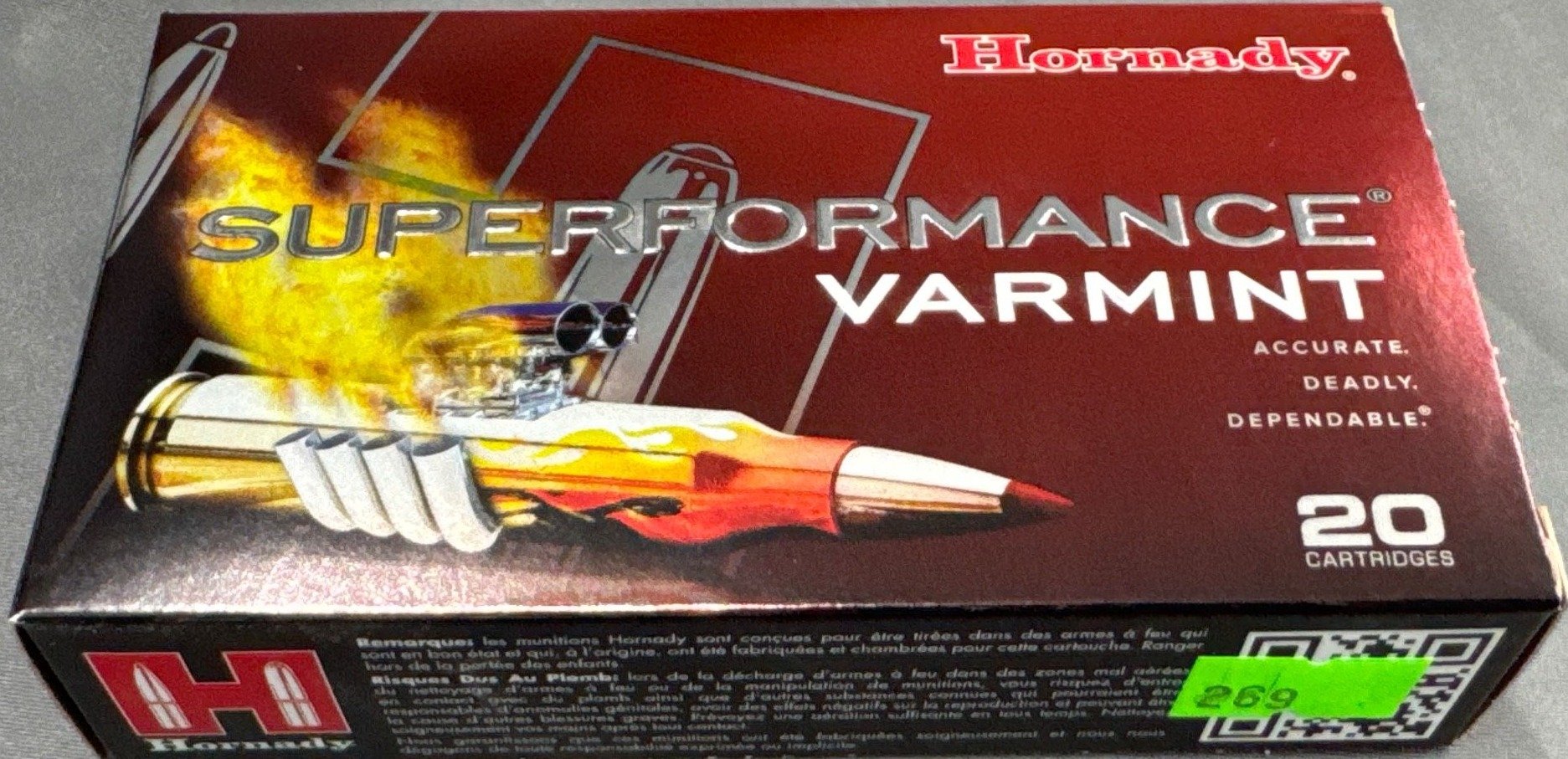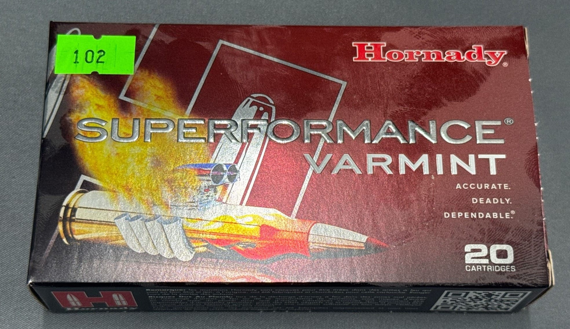 102 Hornady Superformance Varmint Ammunition, 22-250 REM, 50 Gr V-MAX – 20 Rounds