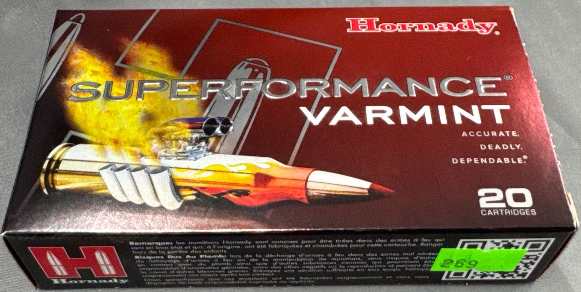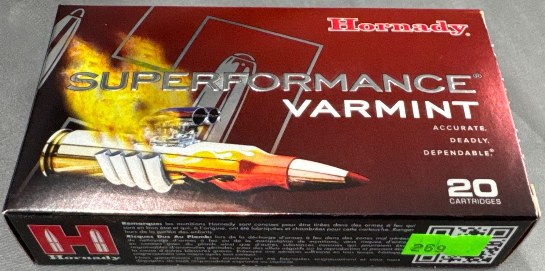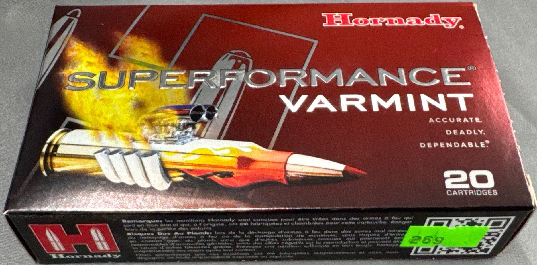 102 Hornady Superformance Varmint Ammunition, 22-250 REM, 50 Gr V-MAX – 20 Rounds