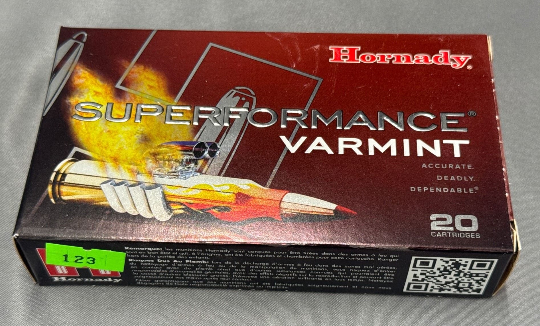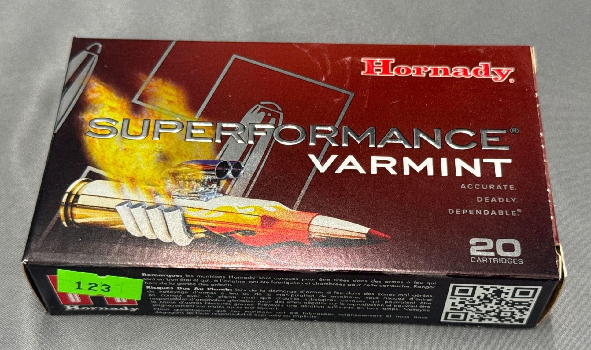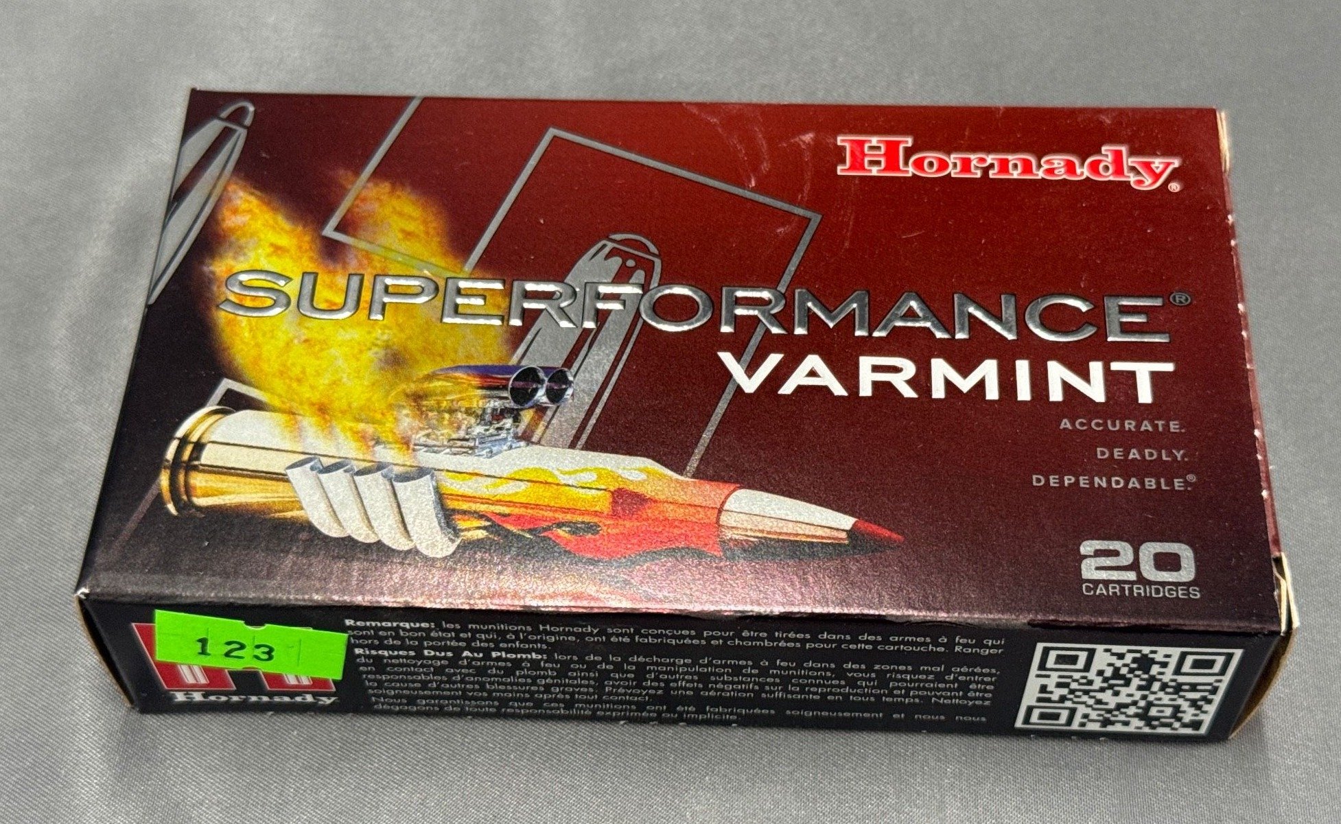 123 Hornady Superformance Varmint 22-250 REM 50 Gr V-MAX Ammunition Box – 20 Rounds