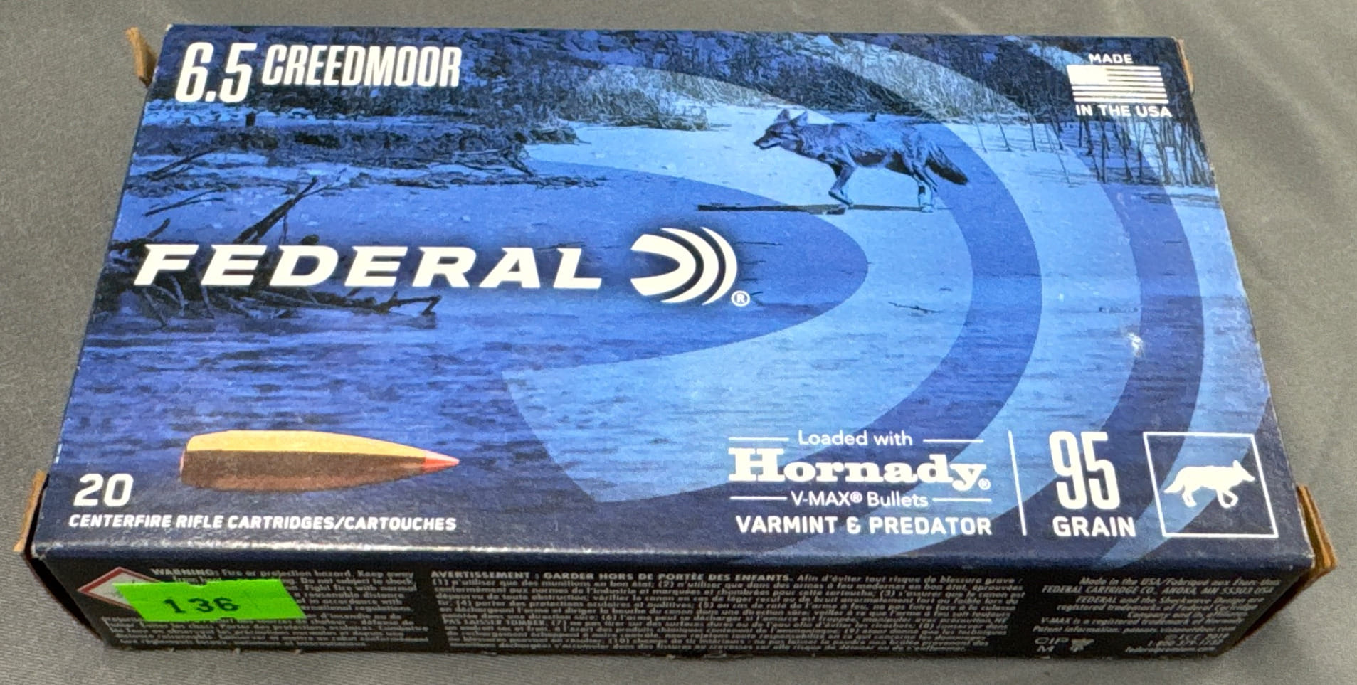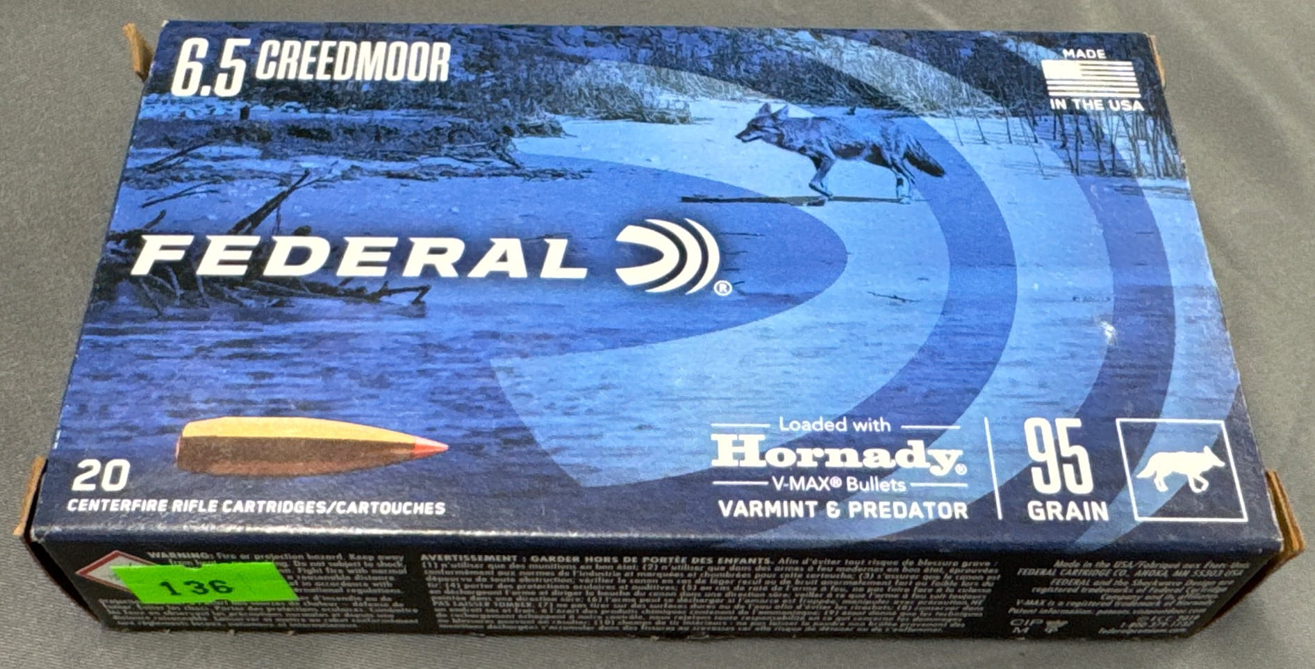 136 20 Federal 6.5 Creedmoor 95 Grain Hornady V-Max Rifle Cartridges – 20 Rounds