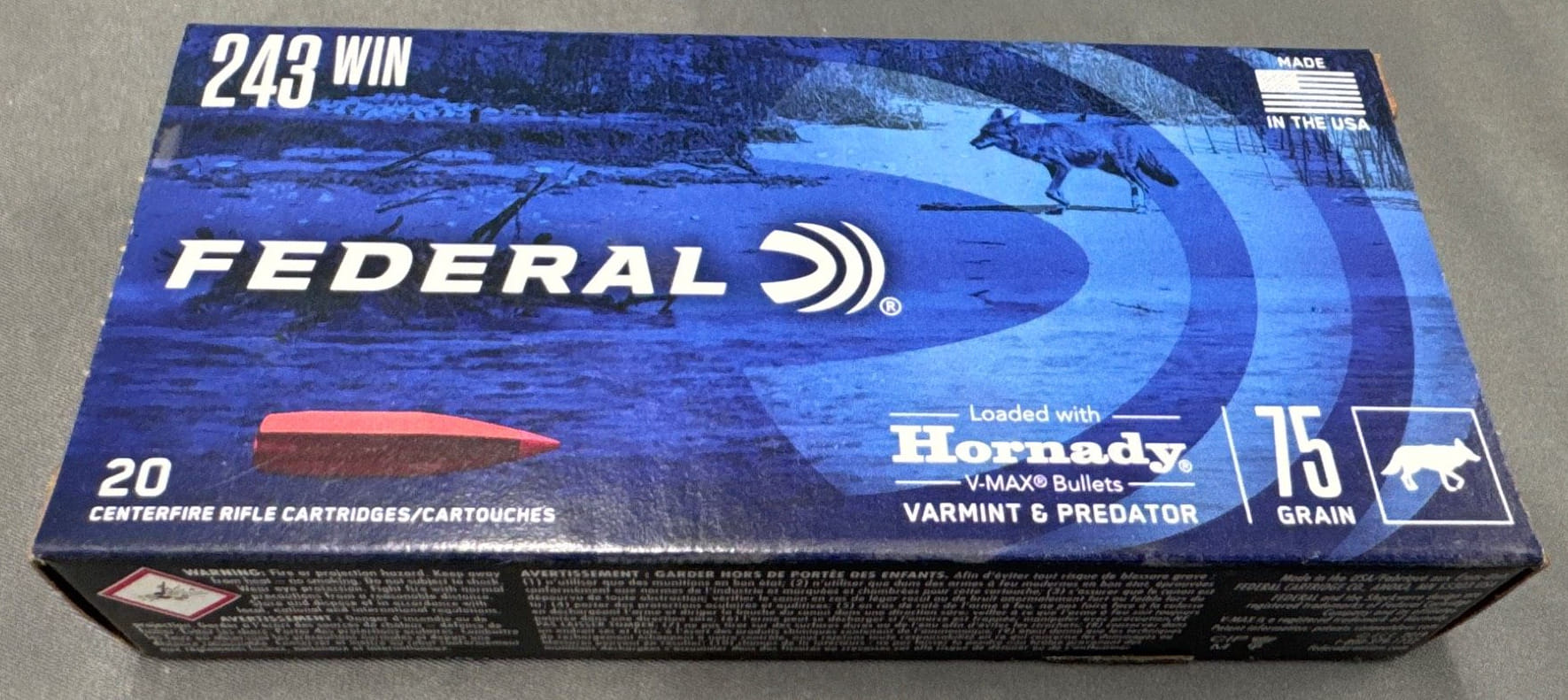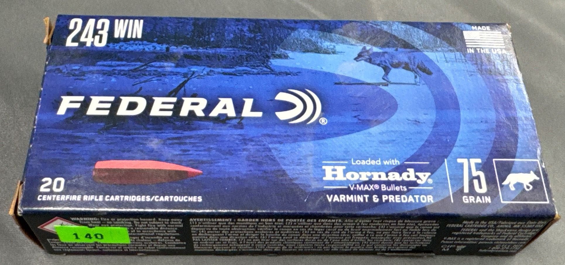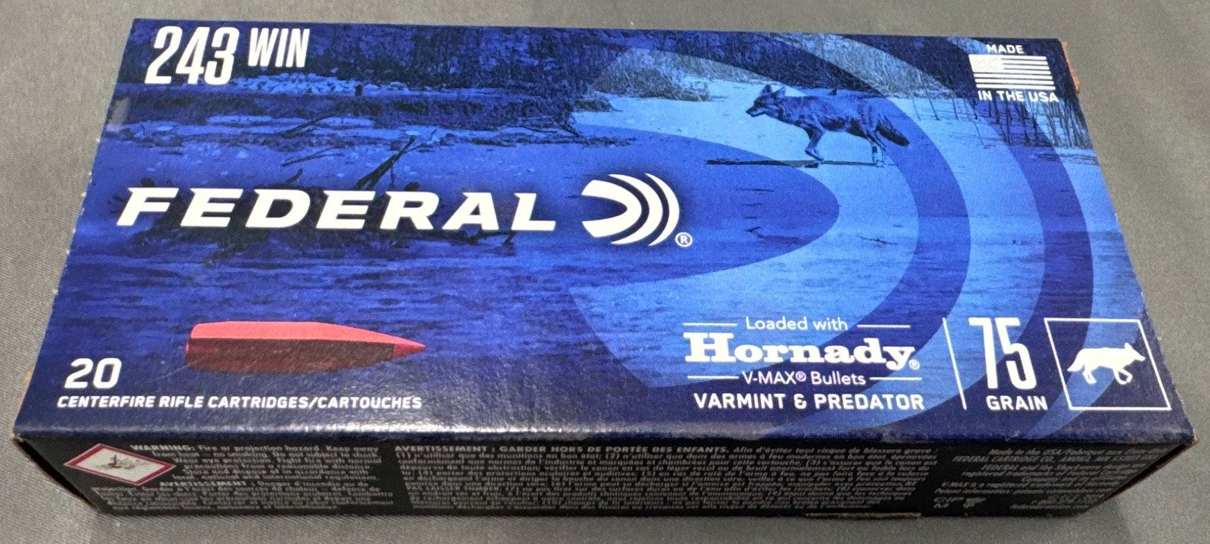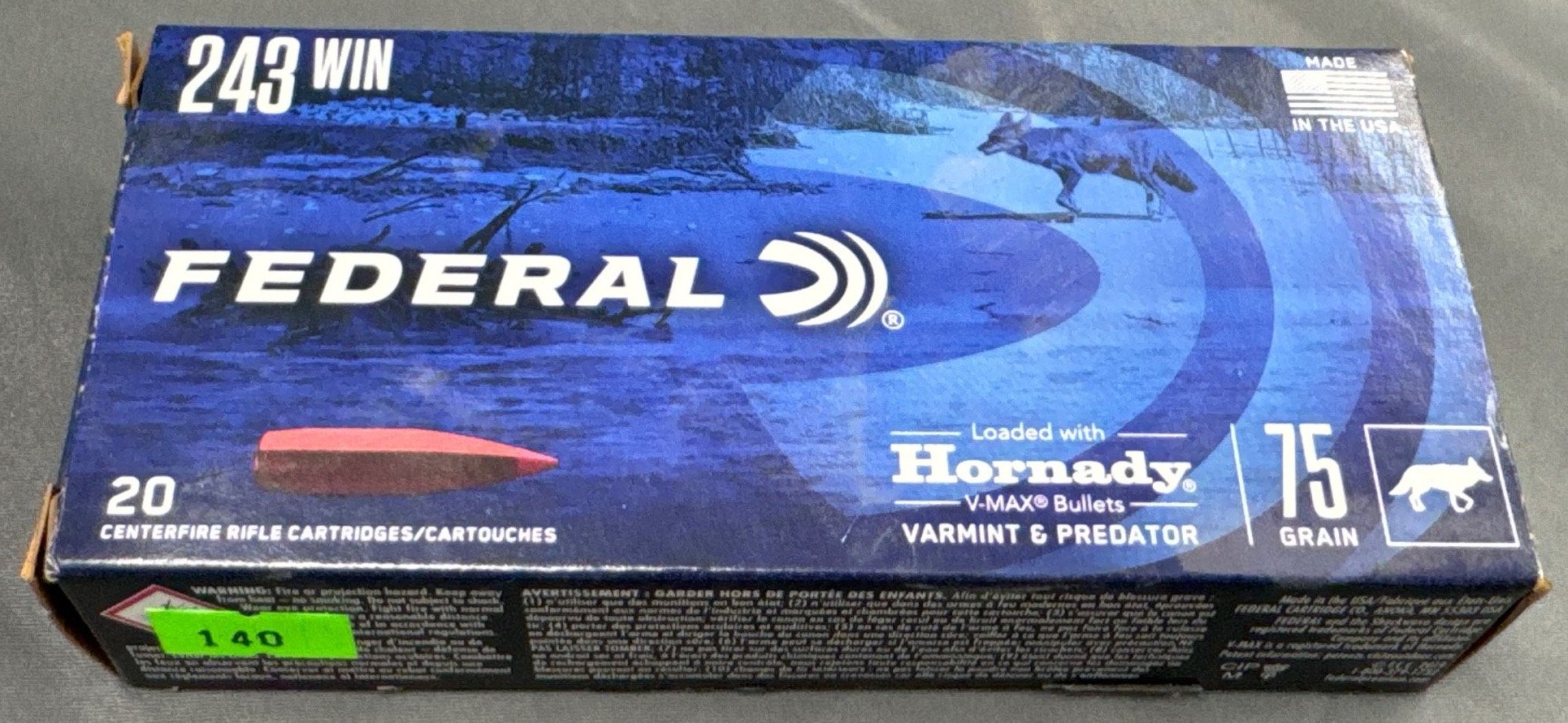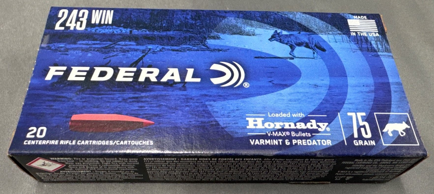 140 Federal Premium .243 Win Ammunition, 75 Grain with Hornady V-Max Bullets – 20 Rounds