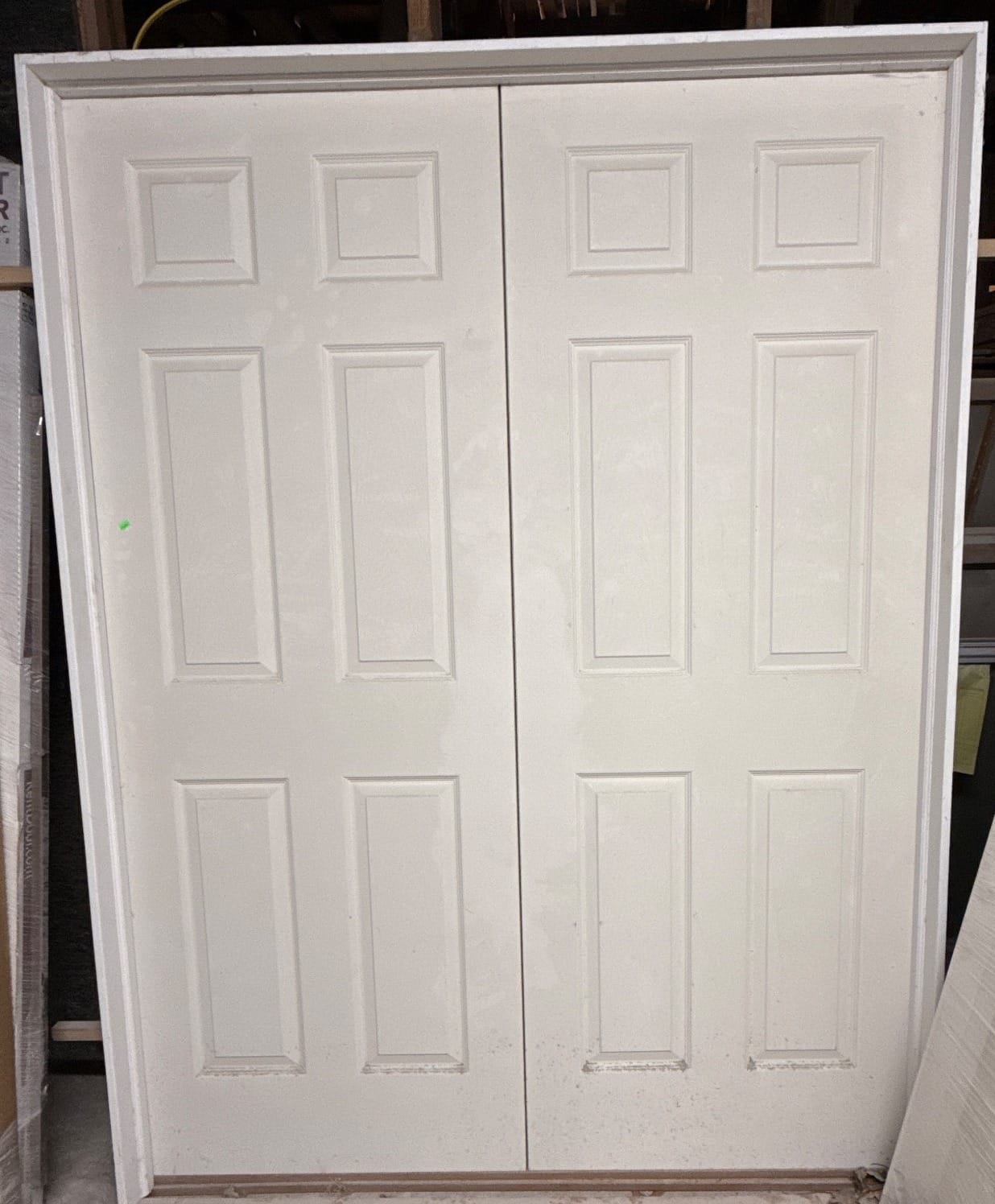 2510 White Interior Double Door with Panel Design and Frame, 82.5”x61.5”x5”