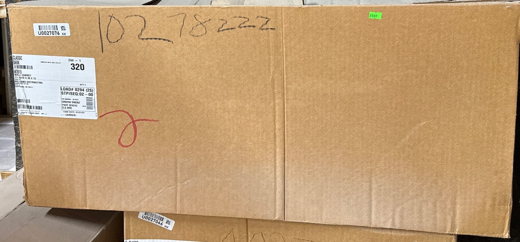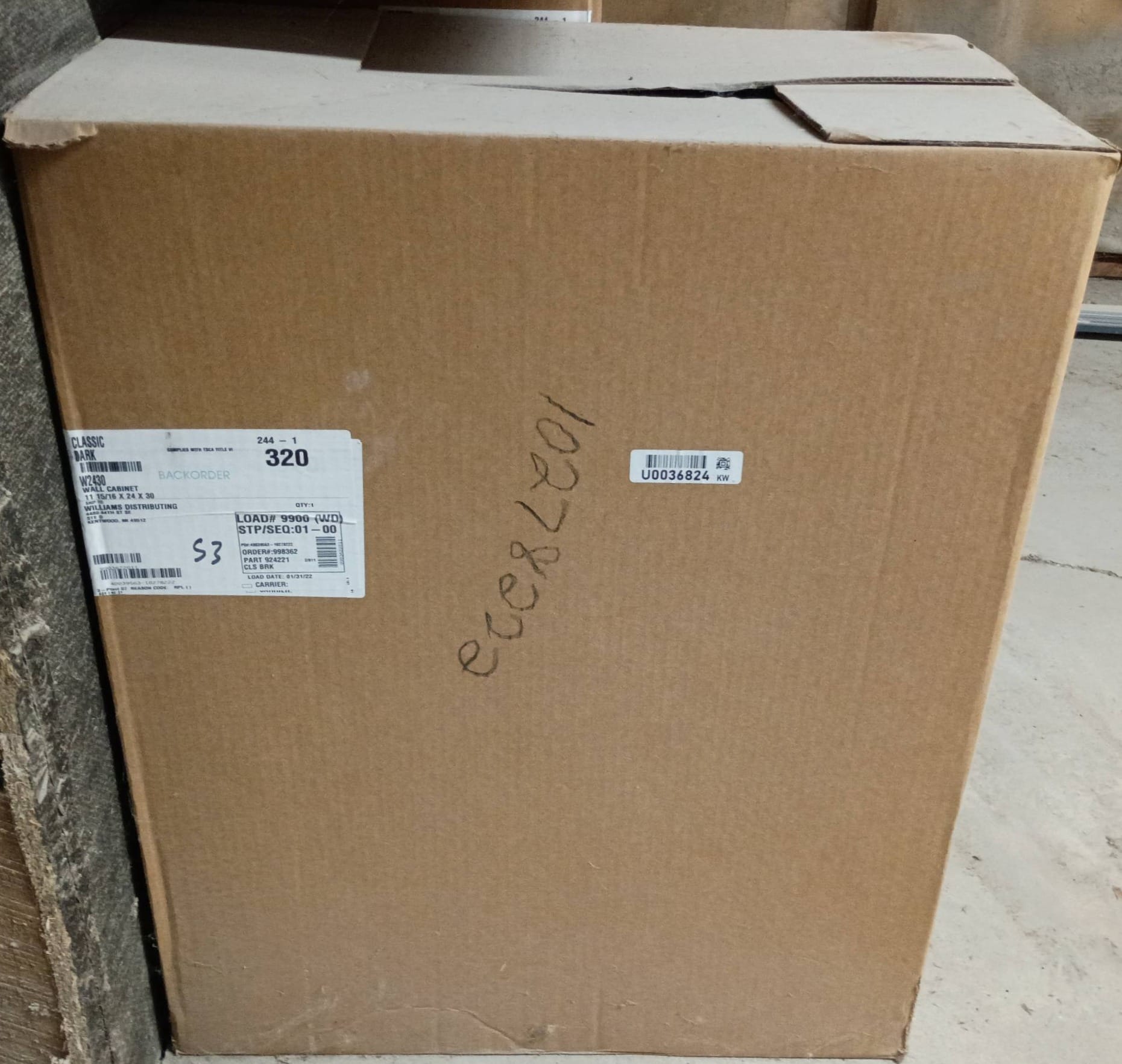 2522 Wall Cabinet in Classic Bark Finish by Williams Distributing, 11 15/16x36x15?