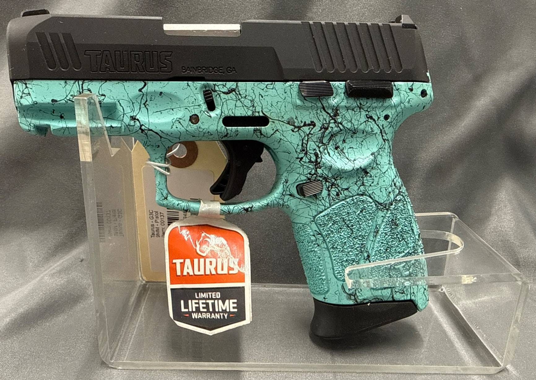 3 Taurus G3C 9mm Compact Semi-Automatic Pistol with Cyan/Black Splatter Finish