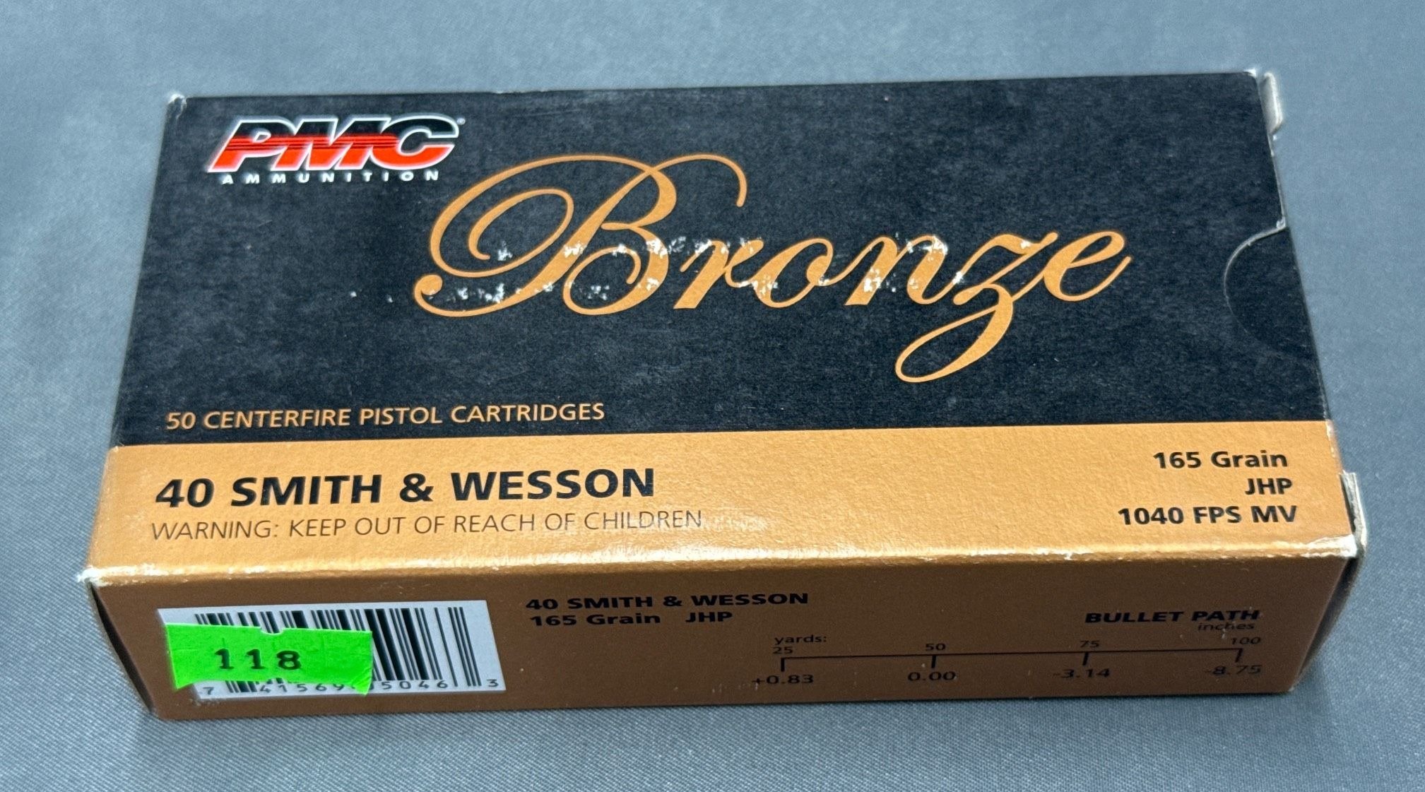118 PMC Bronze .40 Smith & Wesson 165 Gr. JHP Ammunition Box – 50 Rounds