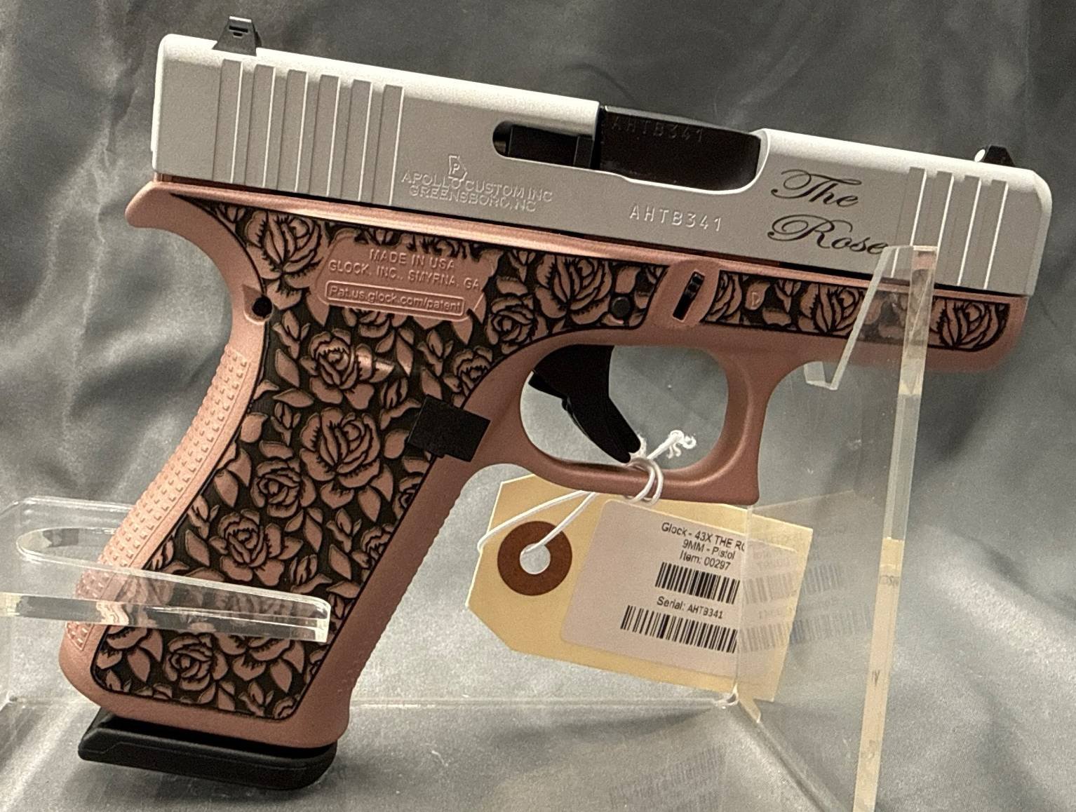12 Glock 43X 9mm Pistol with Custom Rose Themed Engraving