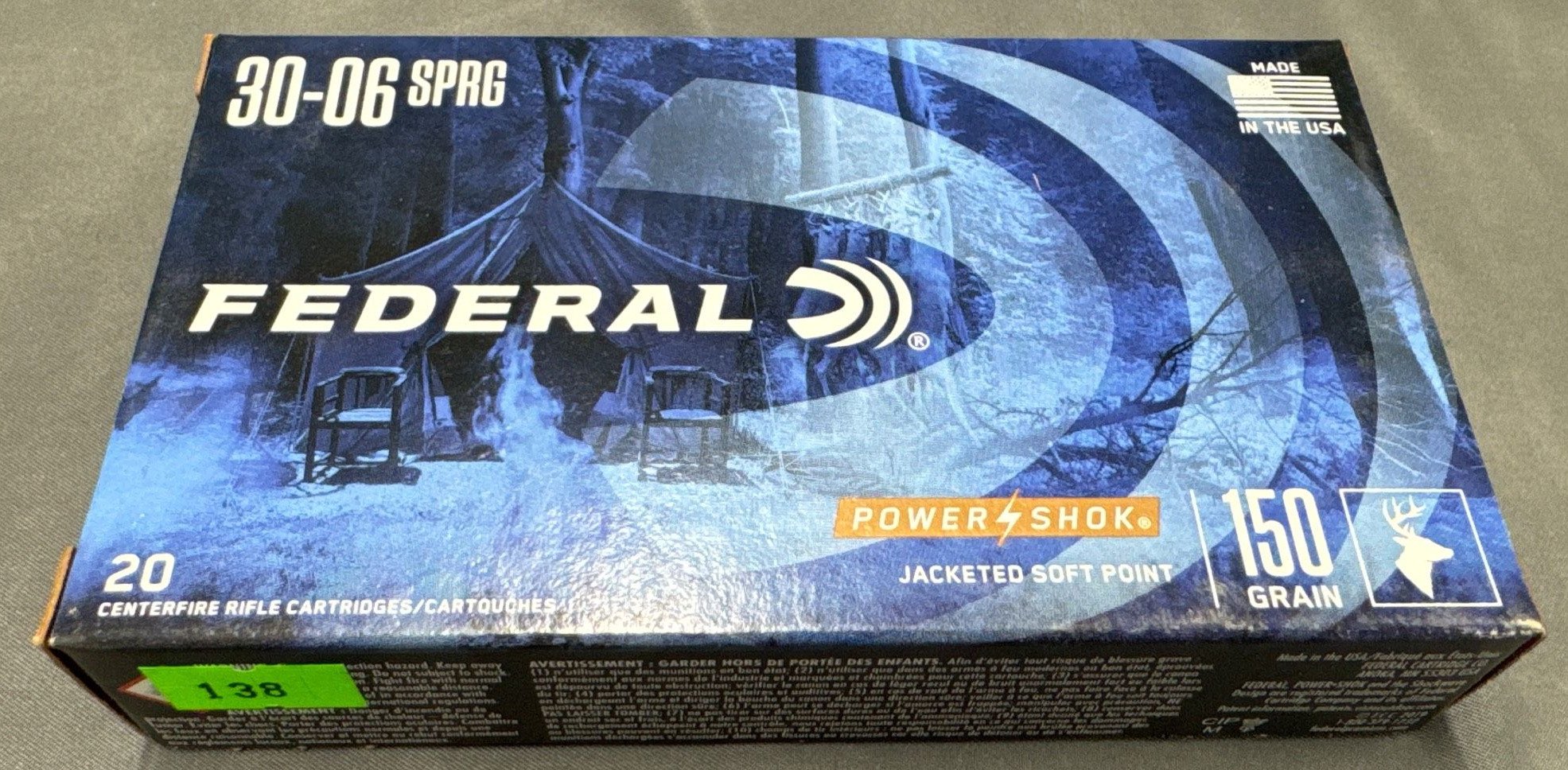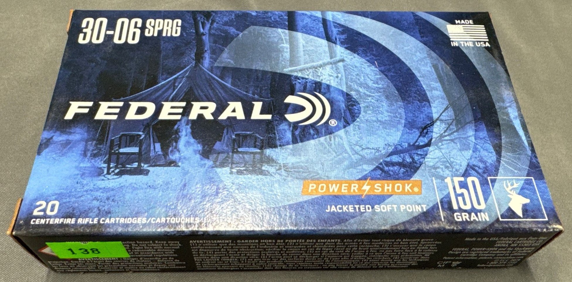 138 Federal Power-Shok 30-06 SPRG 150 Grain Jacketed Soft Point Ammunition Box – 20 Rounds