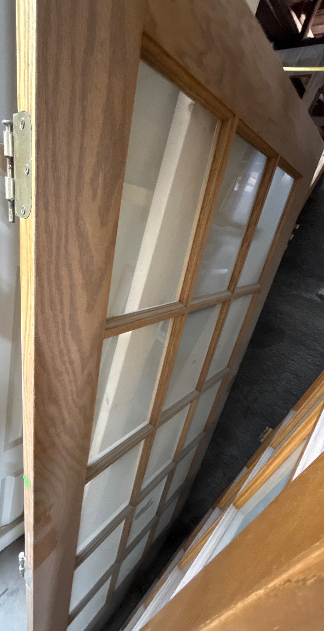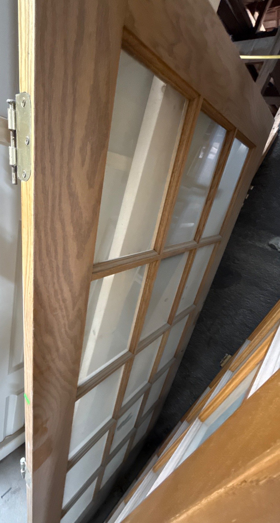 2508 Interior Door with Glass Panels and Brass Hinges, 80”x36.5”