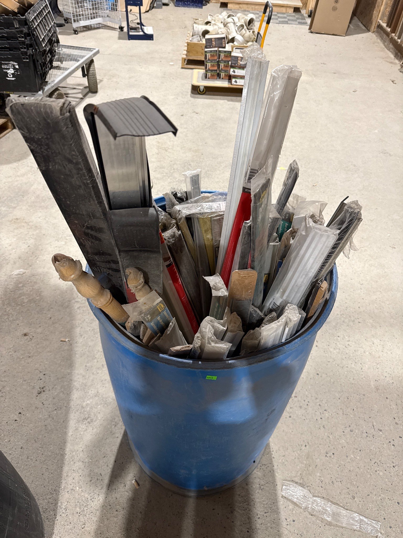 2613 Door Sweeps, Seals, and Hardware in Plastic Barrel