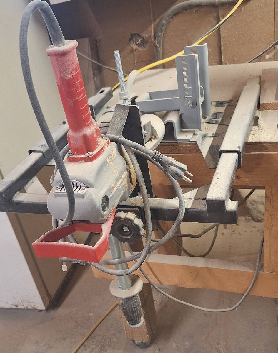 2618 Milwaukee Compact Hole-Shooter With Lumberjack Tools Attachment for Making Stakes (seller will remove from bench)