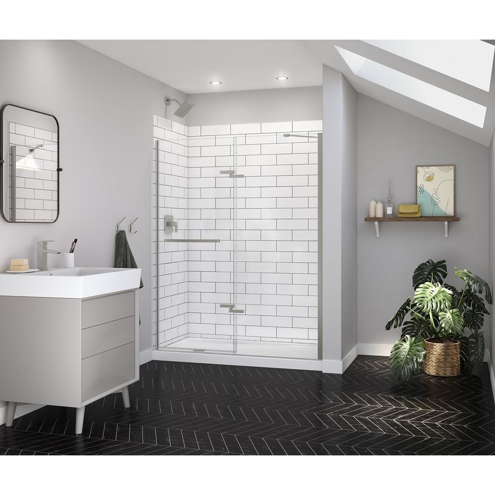 571029 MAAX - Reveal Sleek 59 in. W x 71.5 in. H Pivot Frameless Alcove Shower Door in Brushed Nickel