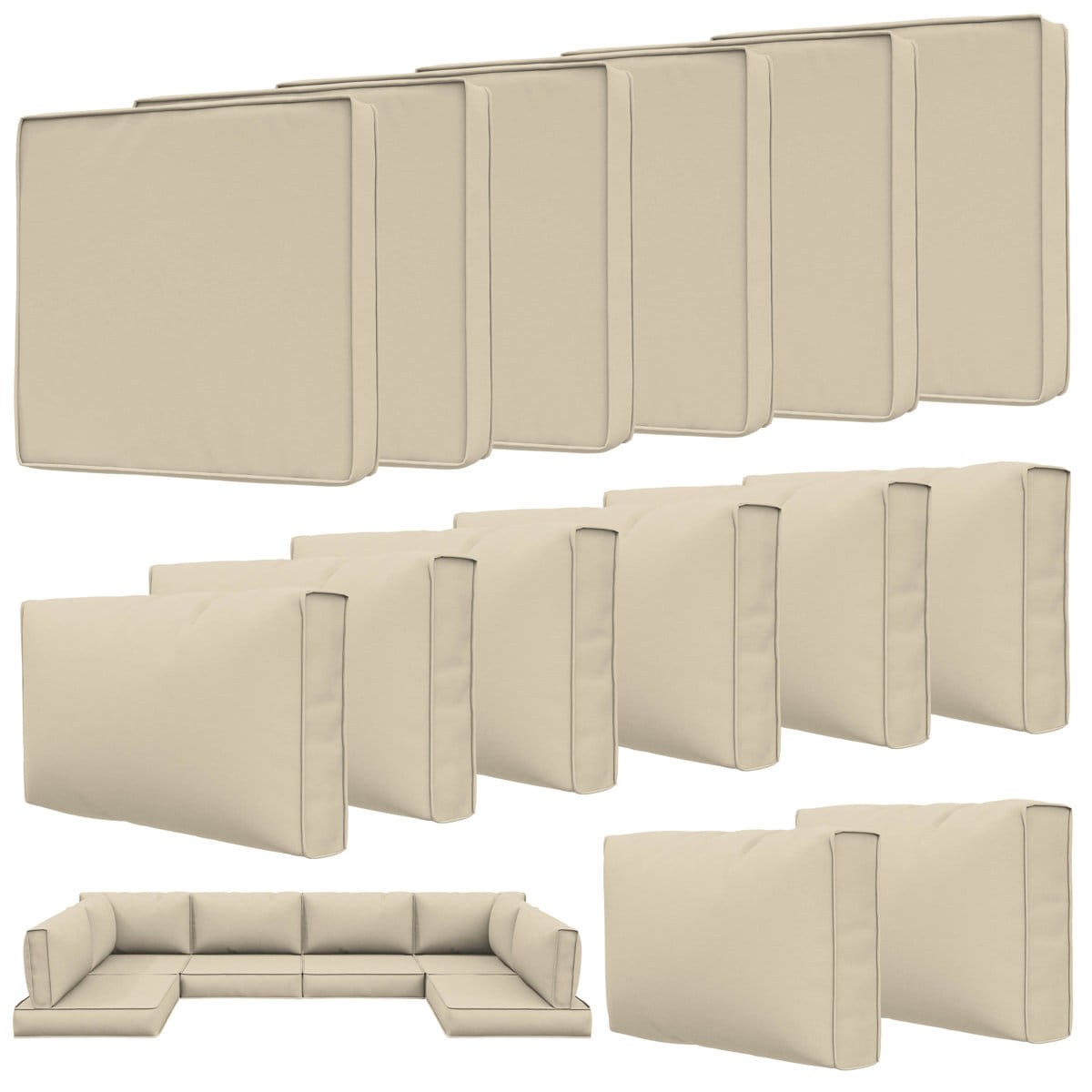 571053 WYNEE - Wynee 14 Pcs Outdoor Cushions Set 5 in Outdoor Furniture Replacement Cushions, Sectional Cushions, Cream
