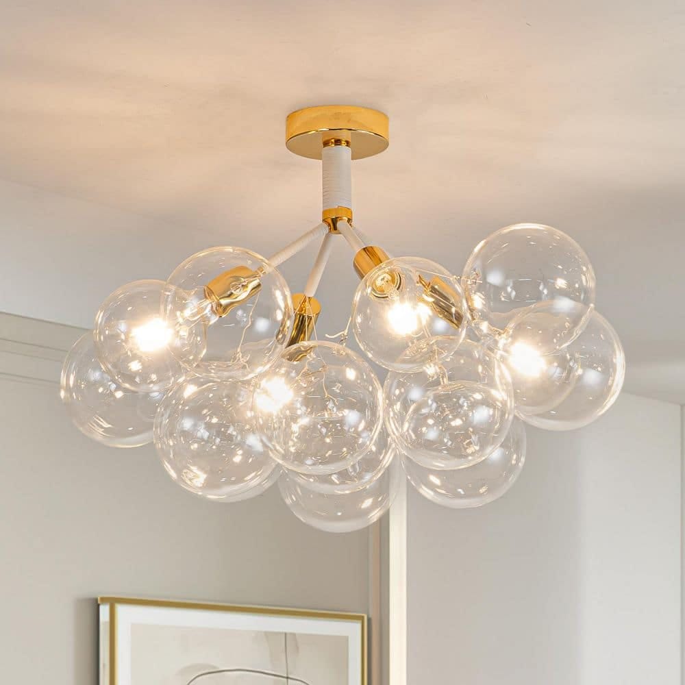 571071 Y - 22.8 in. 4-Light White Bubble Semi Flush Mount with Glass Shade and Bulbs Included - SEE PRODUCT DETAILS