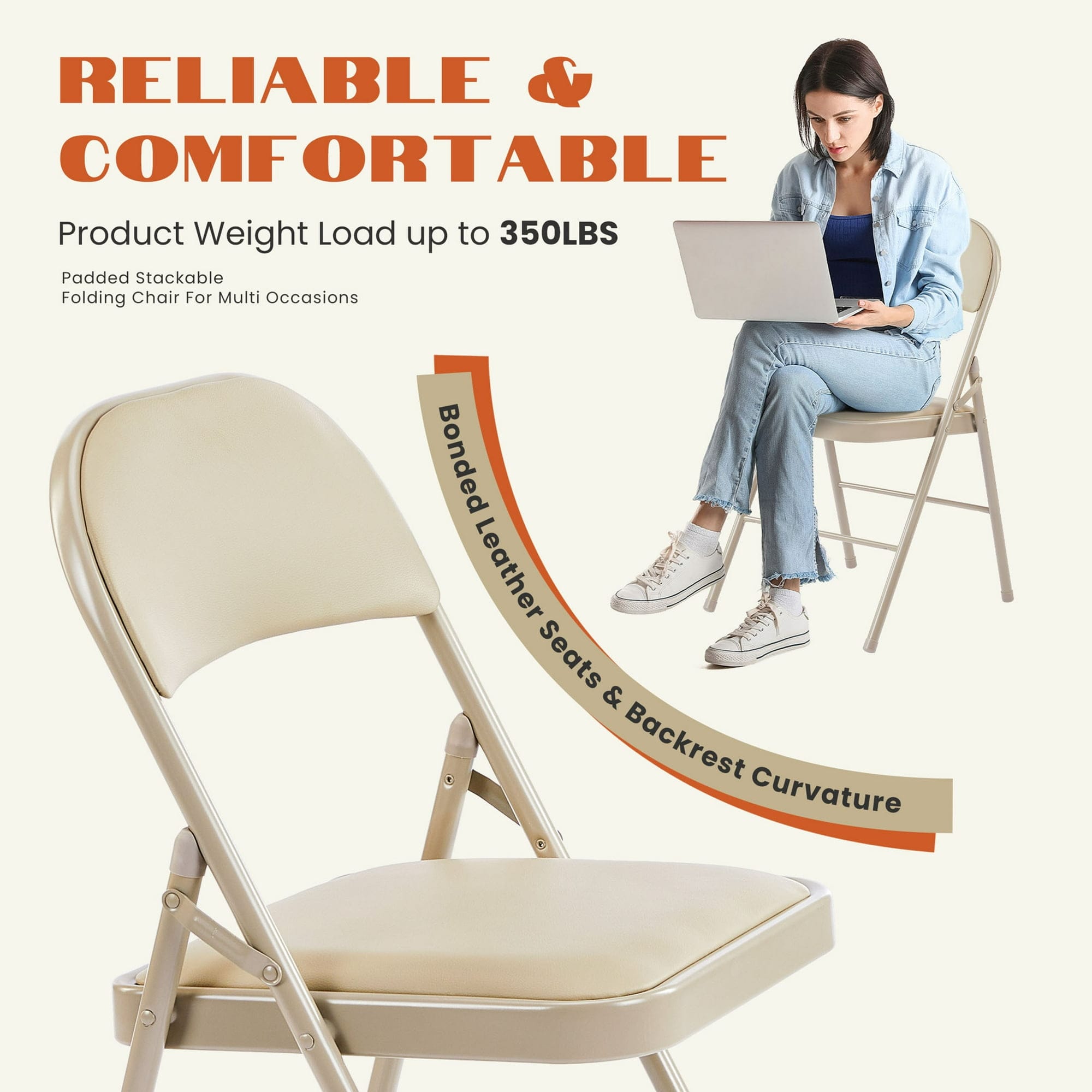 571087 JOINSUN - Folding Chair 2 Pack, Convenient Leather Padded Folding Chairs, Khaki