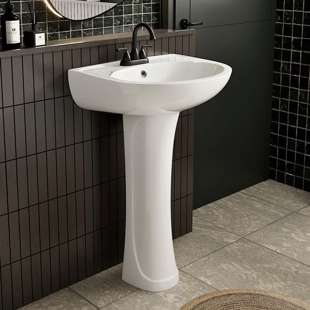 571096 LOS FLEXI - 21 in. x 19 in. White Ceramic Rectangular Pedestal Bathroom Sink Combo with 3 Faucet Holes (4 Centerset) and Overflow