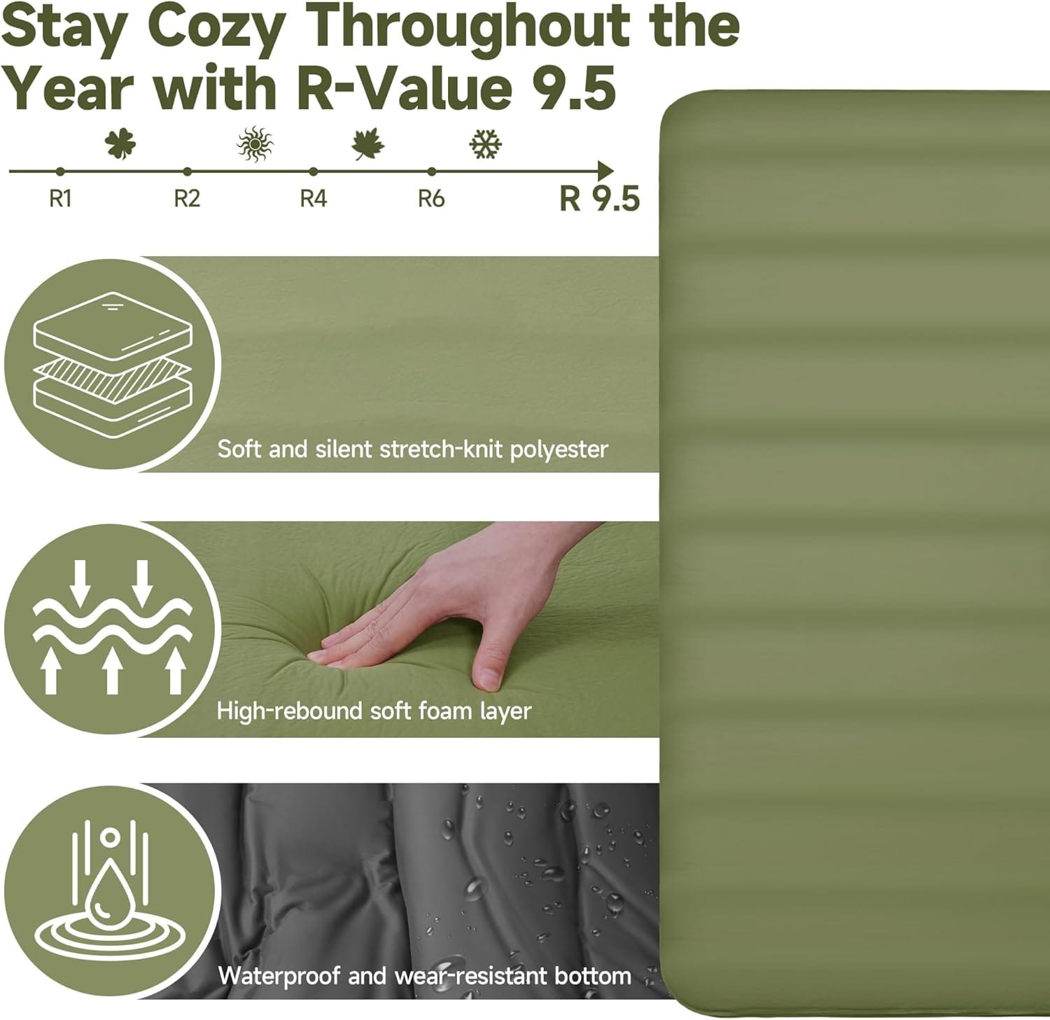 571110 OUTSKIRT - OUTSKIRT Camping Mattress, Self Inflating Sleeping Pad, Foam Camping Pad for Sleeping, 4†Thickness Sleeping Mat for Camp/Travel