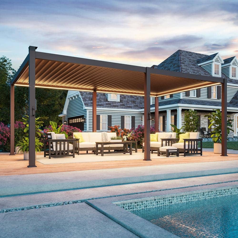 571028 HAMPTON BAY - Providence Place 11 ft. W x 10 ft. D Brown Hard Top Gazebo