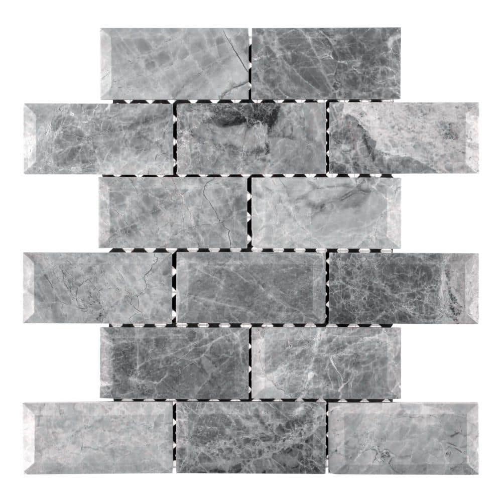 571043 JEFFREY COURT - Tundra Grey 2 x 4 Beveled 10 in. x 11.75 in. Interlocking Polished Marble Mosaic Tile (8.16 sq. ft./Case)