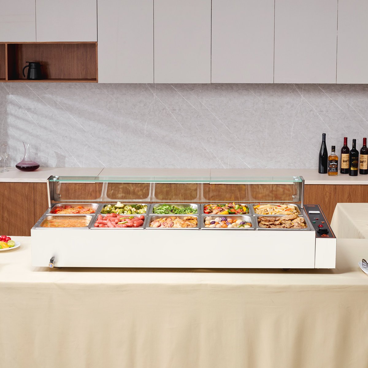 571046 THE PARTY AISLE - Commercial Electric Food Warmer Countertop Buffet 10*8Qt with Glass Shield