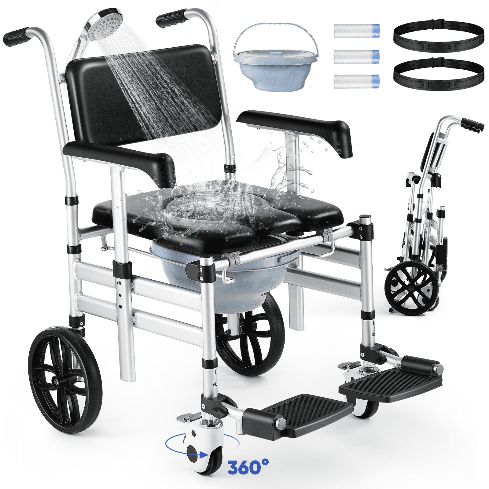 571088 HYGIVITAL - Rolling Bath Chair for Elderly and Disabled with Adjustable Armrest with Padded Seat - SEE PRODUCT DETAILS