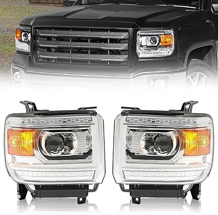 571092 HECASA - Pair Projector Headlight Lamp Assembly Compatible with 2014-2019 GMC Sierra 1500 2500HD 3500HD Base/Denali/SLE/SLT