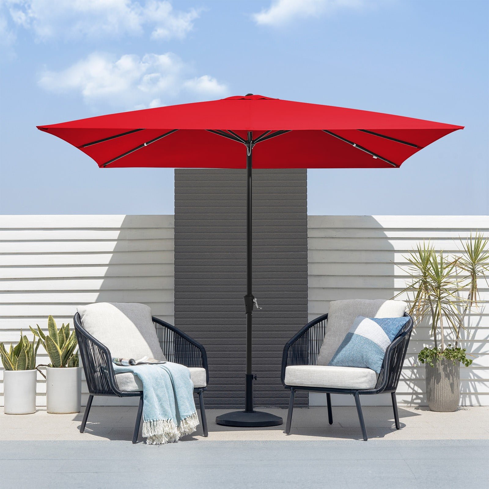571104 JUSTLET - JUSTLET 8 x 10 ft Outdoor Rectangular Patio Market Umbrella, Red