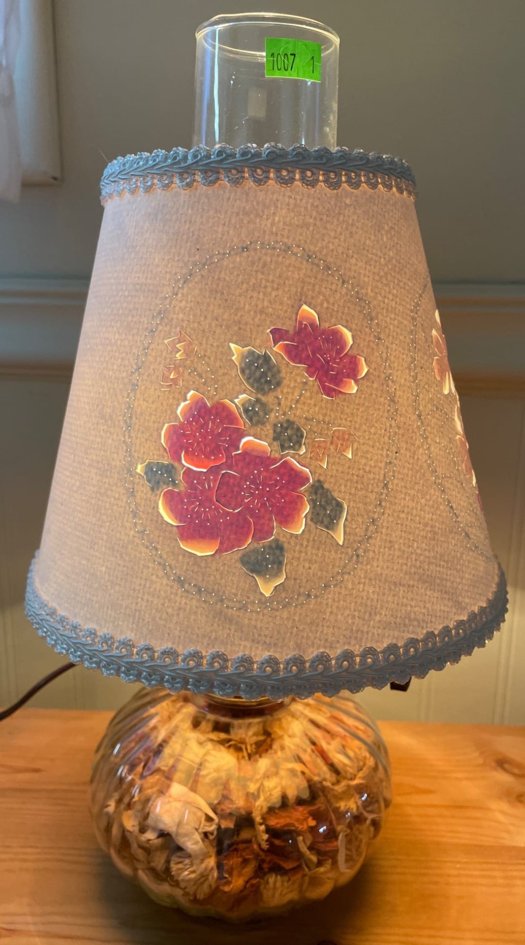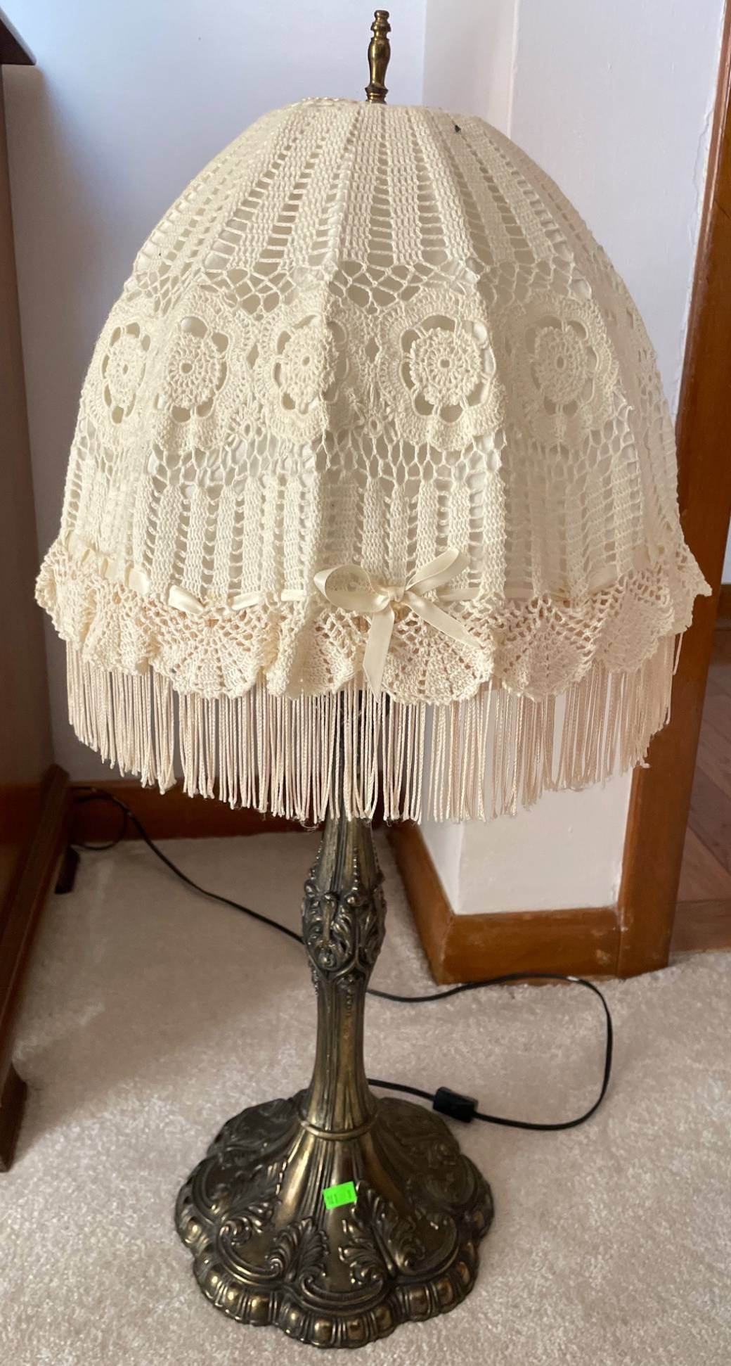 101 Brass Table Lamp with Crocheted Shade and Fringe Details 30”