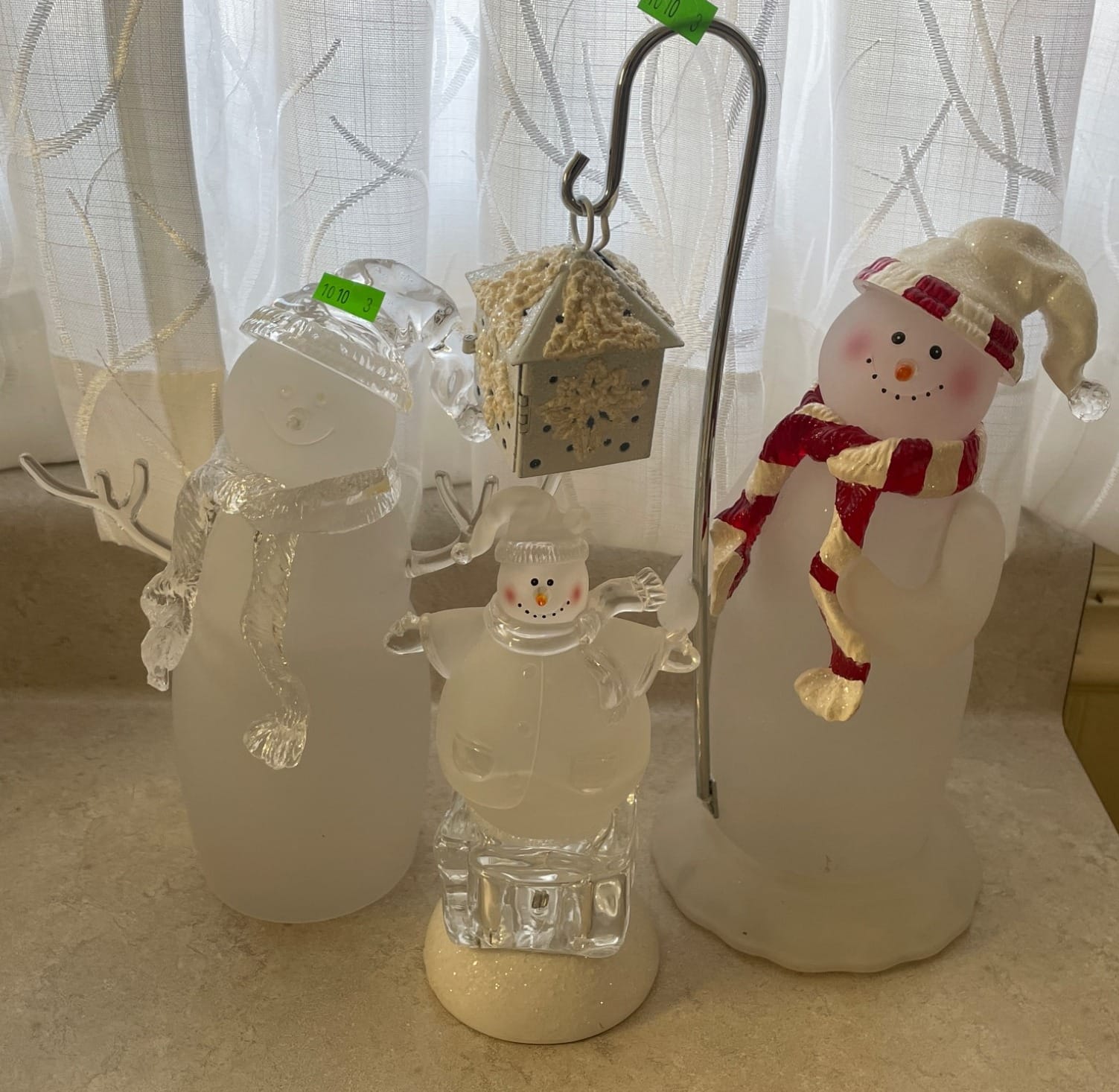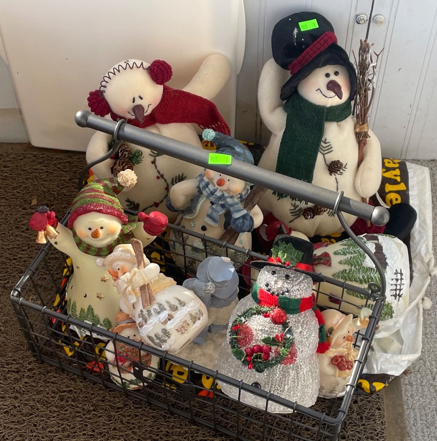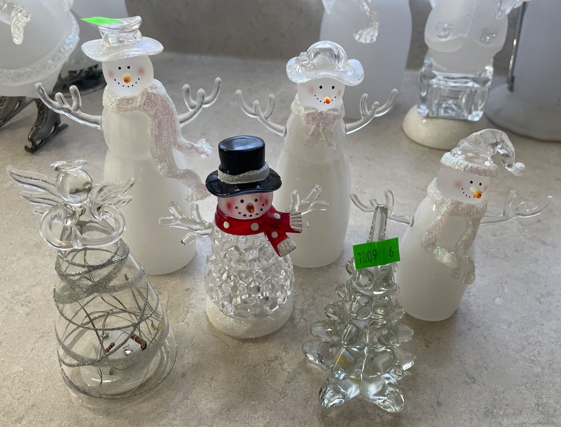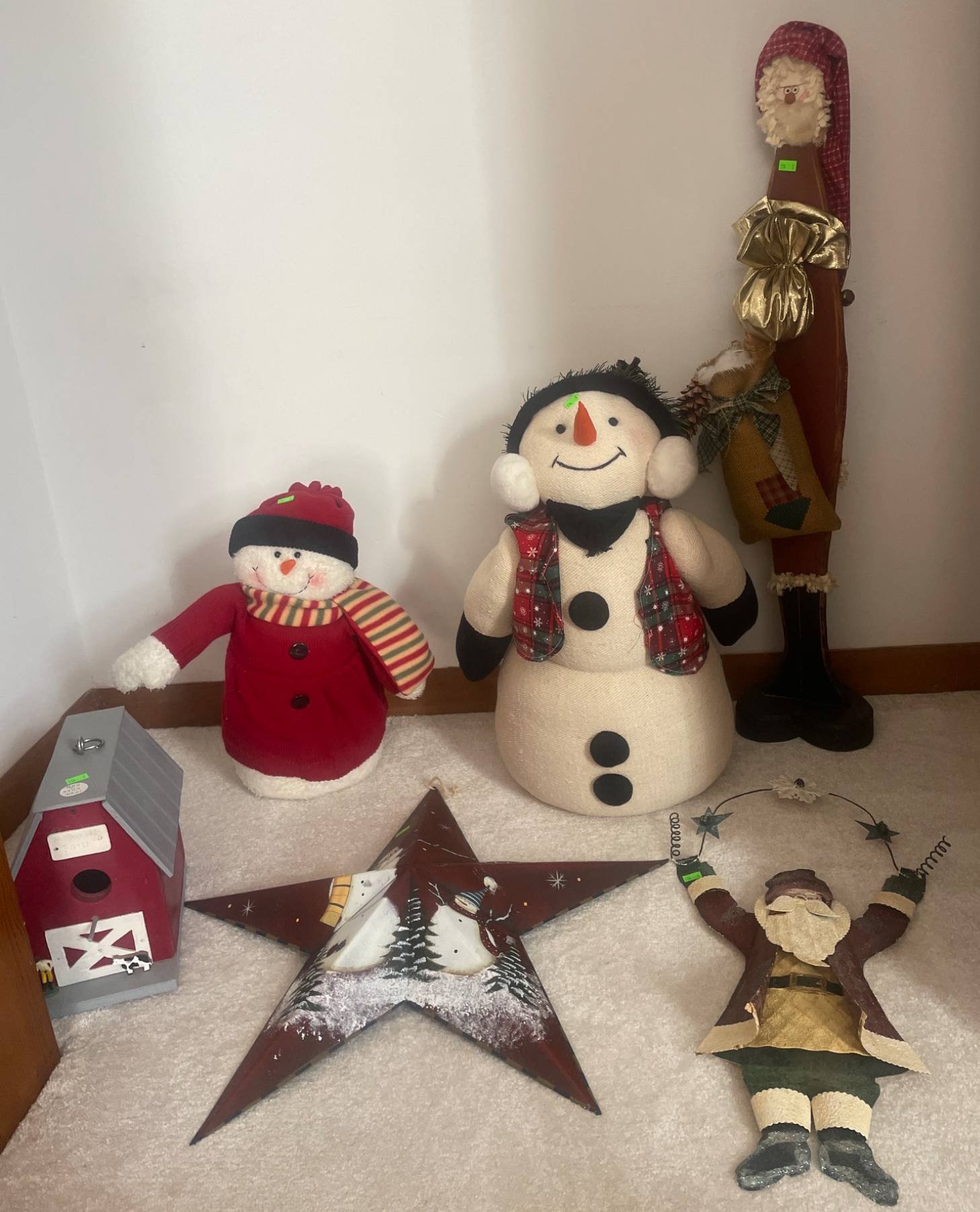 114 Holiday-Themed Figurines & Decor Items Inc. Plush Snowmen and Santa Decor, 32”-9”