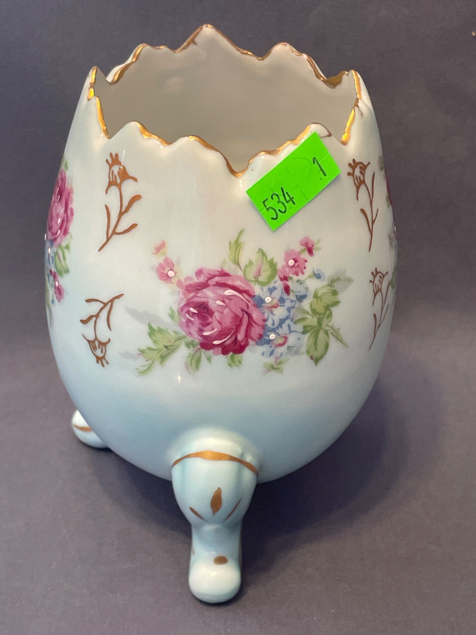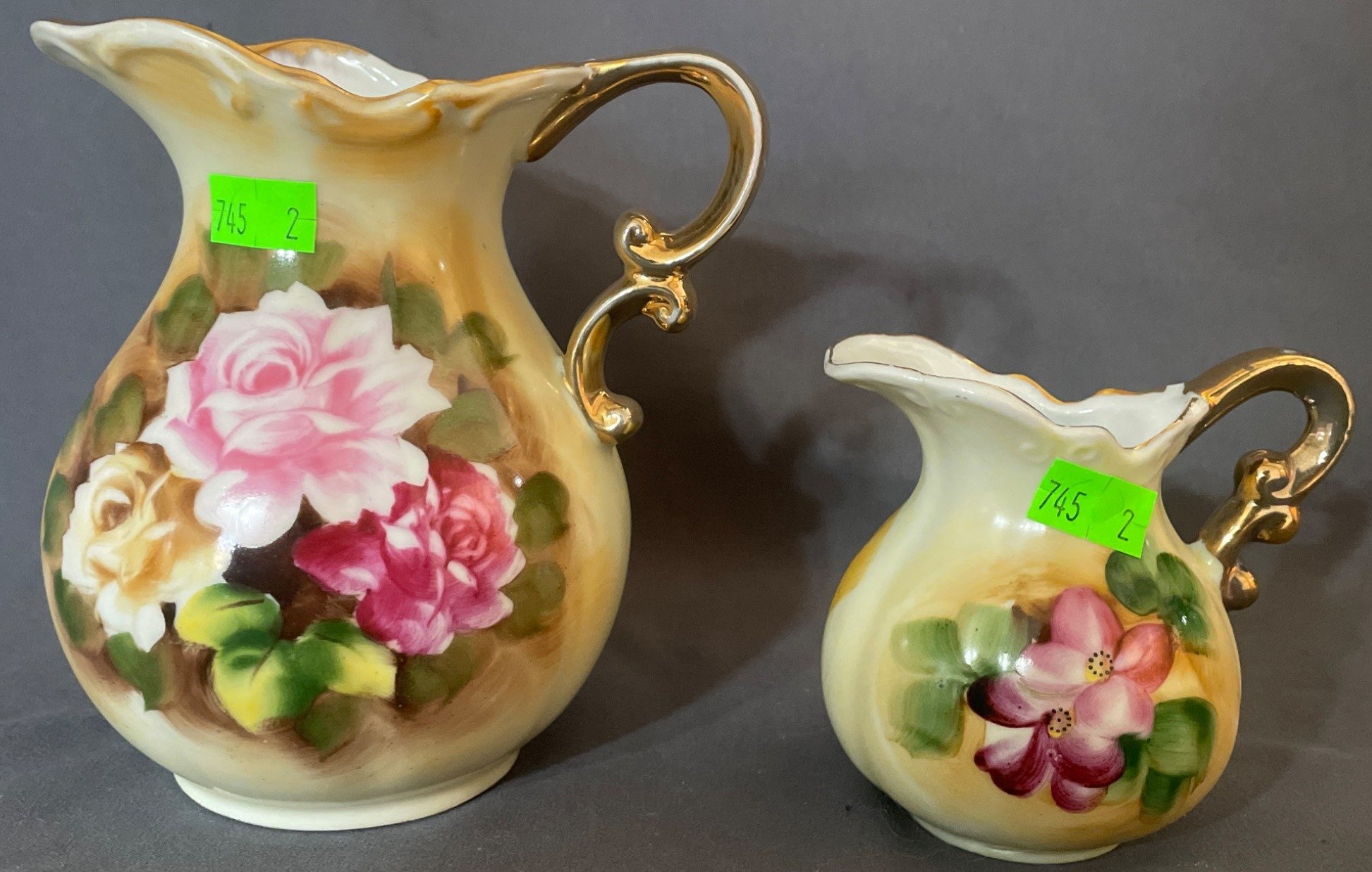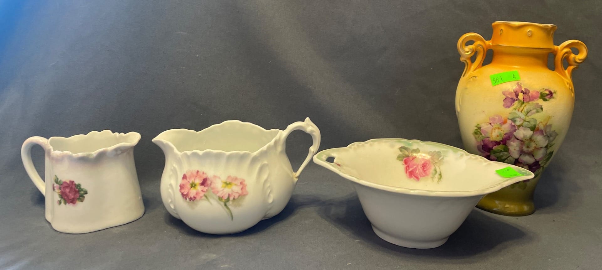 102 Floral Basket Made in Italy, White Teapot, and Rose-Patterned Pitcher 7”,6”,4”