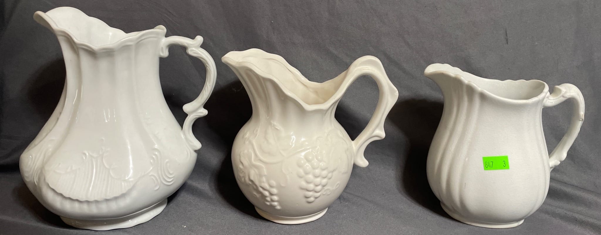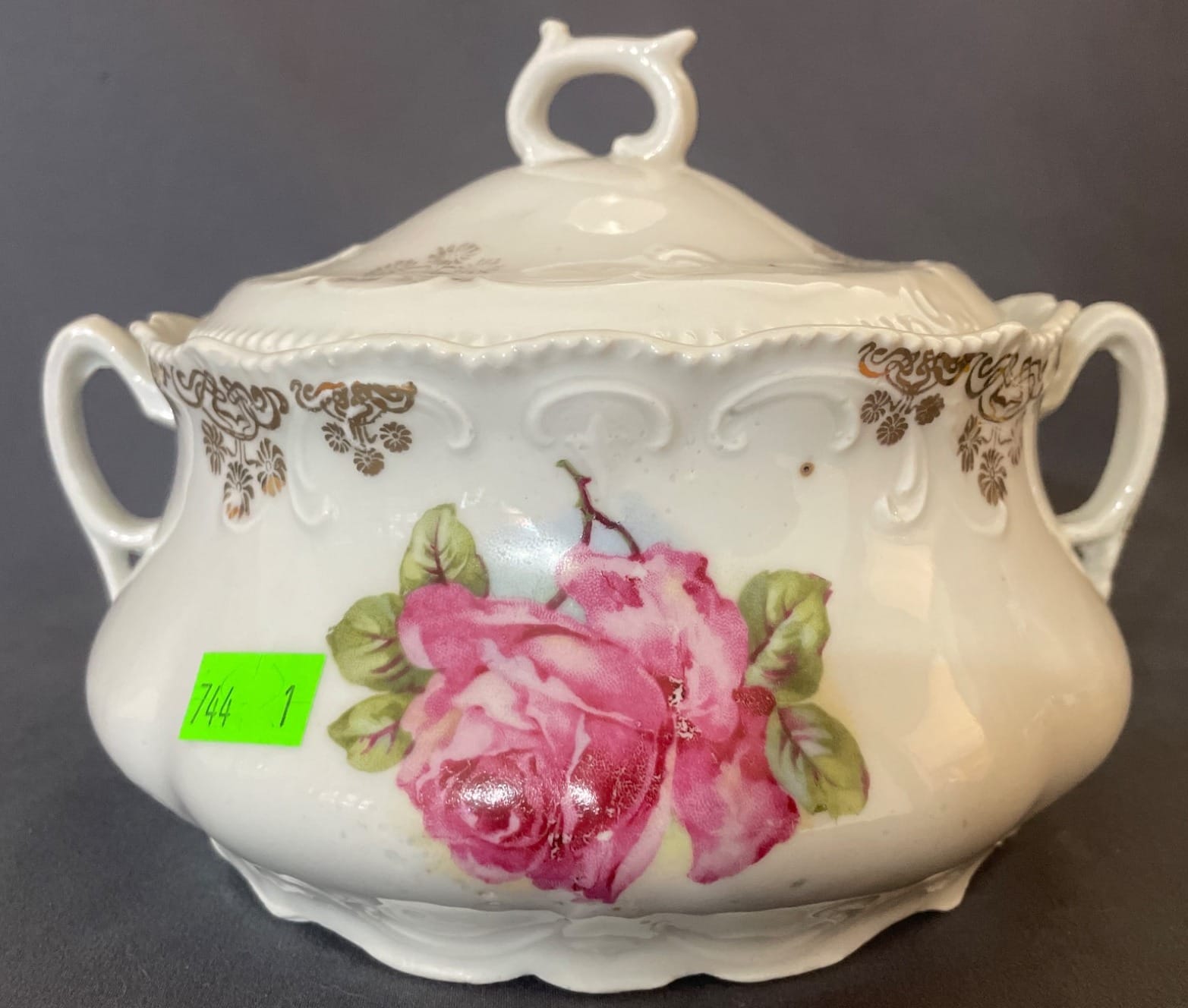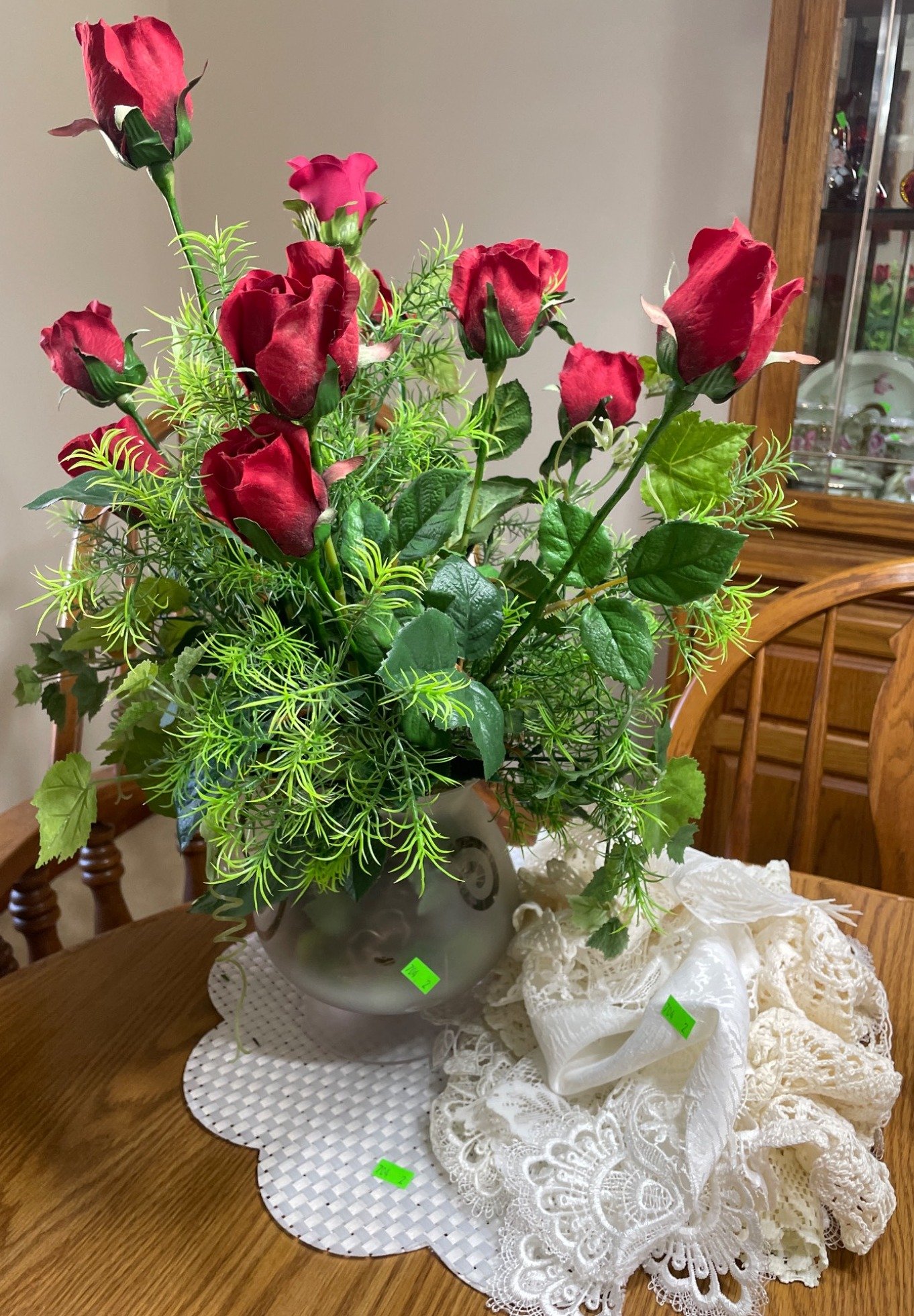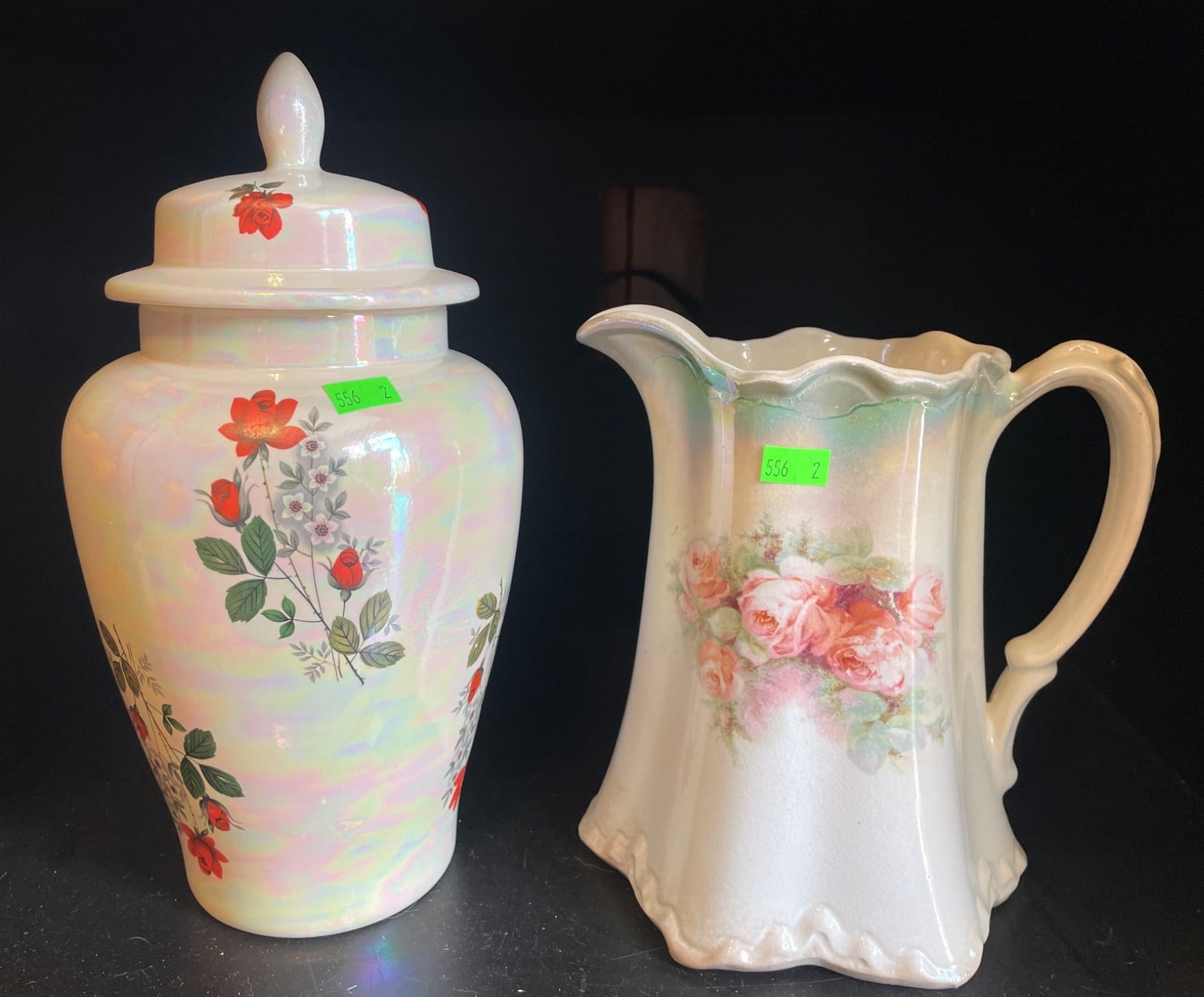 102 Floral Basket Made in Italy, White Teapot, and Rose-Patterned Pitcher 7”,6”,4”