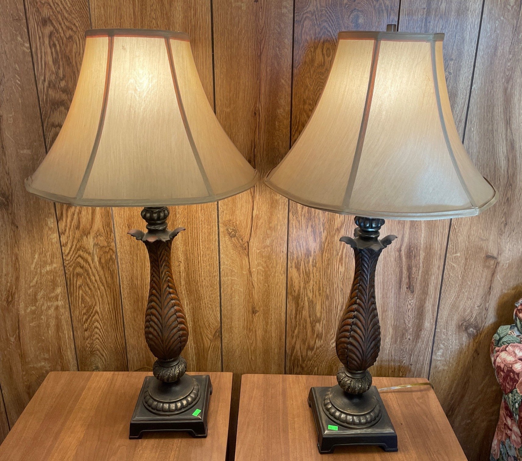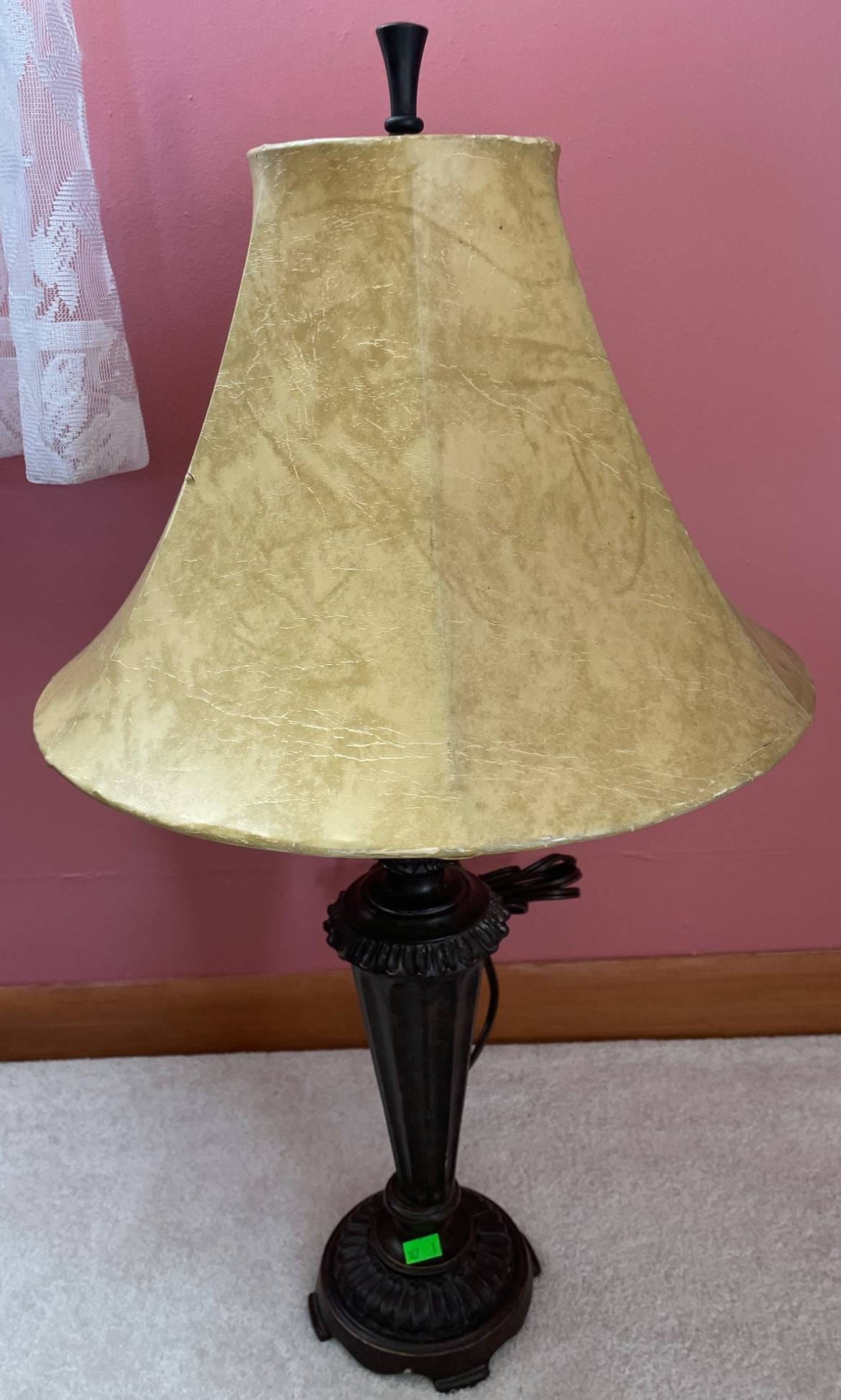 107 Table Lamp with Fluted Metal Base and Fabric Shade 28”