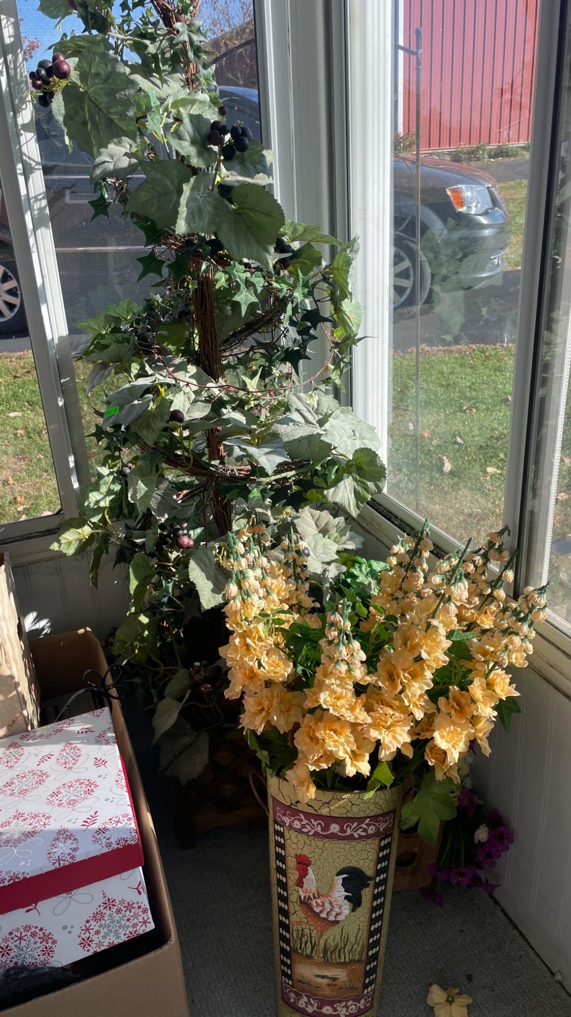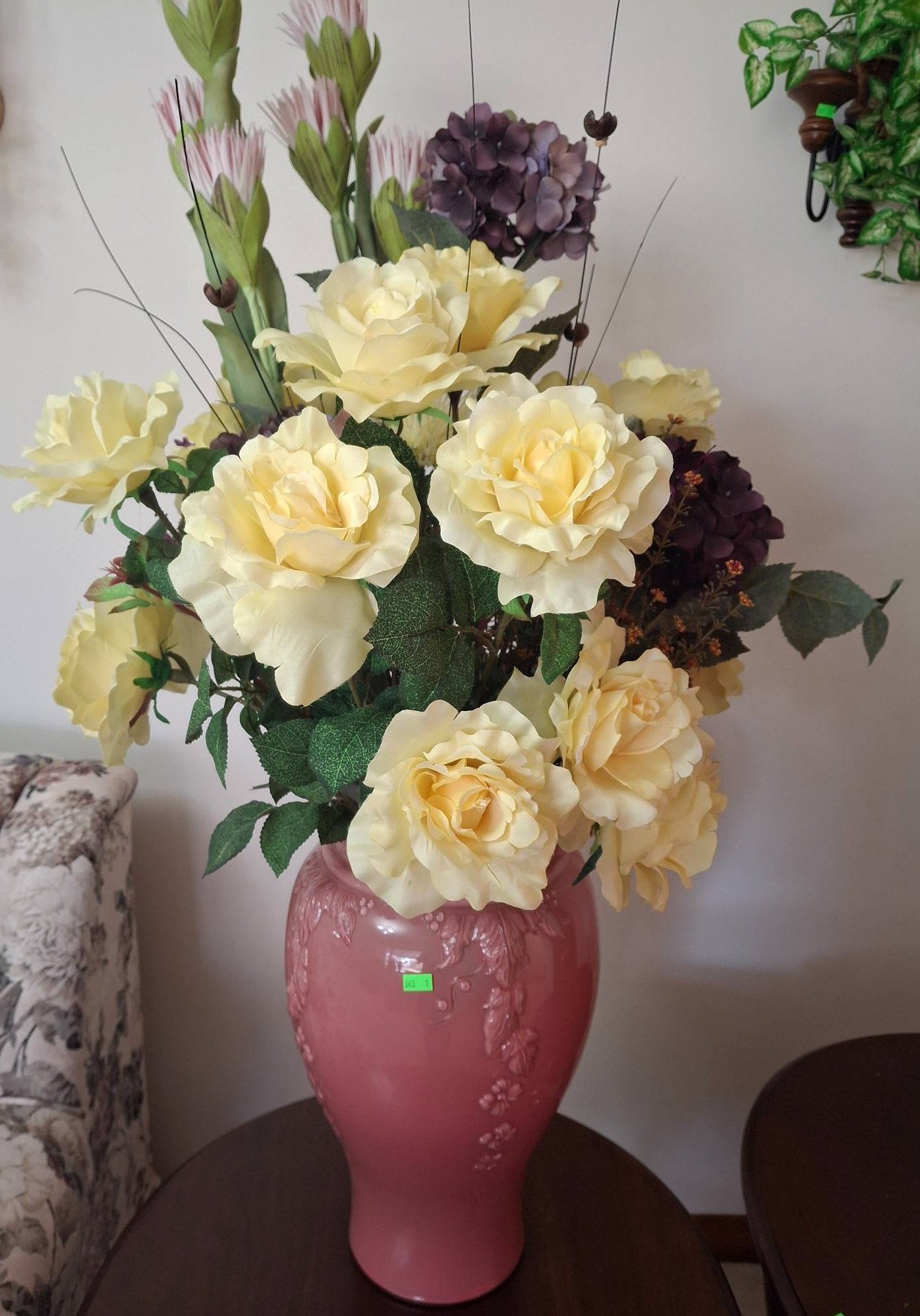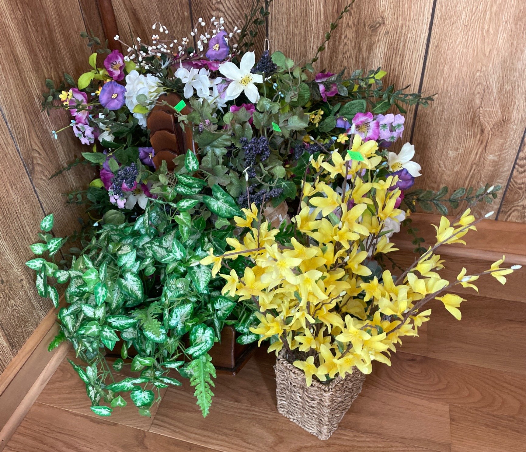220 Artificial Floral Wreath, Hanging Basket, and Greenery Arrangement