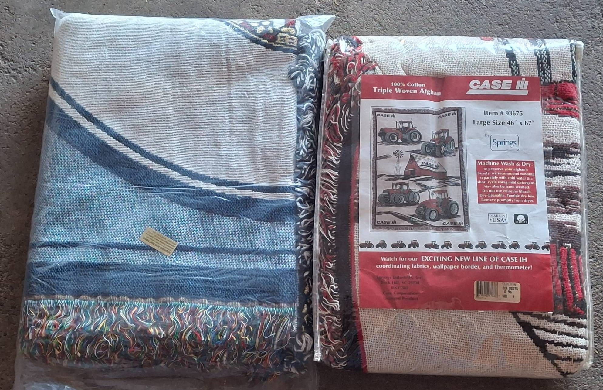 2002 Case IH 100% Cotton Triple Woven Afghan & Woven Blanket 46?x47?