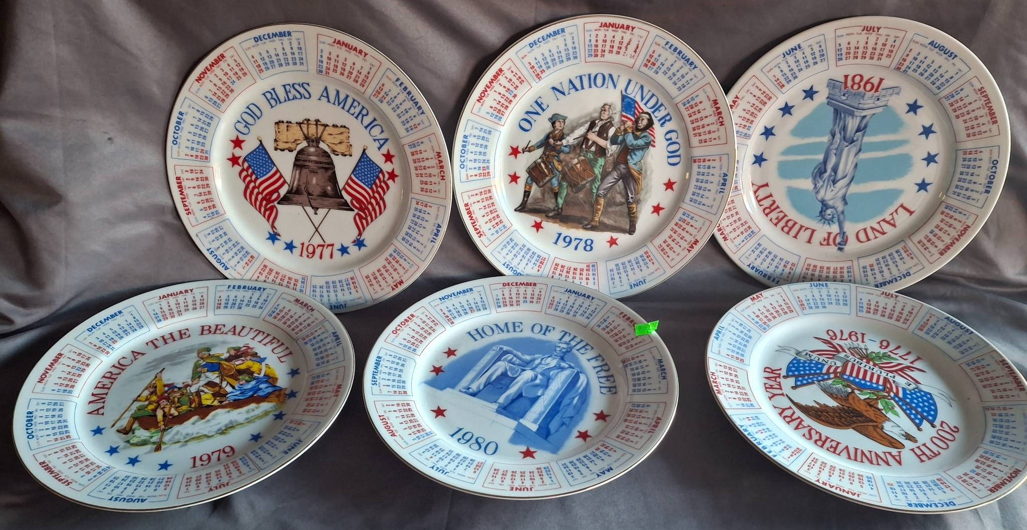 2007 Spencer Gifts Inc. Series V Calendar Collection Ceramic Plates (6), 1977-1981 9? Dia.