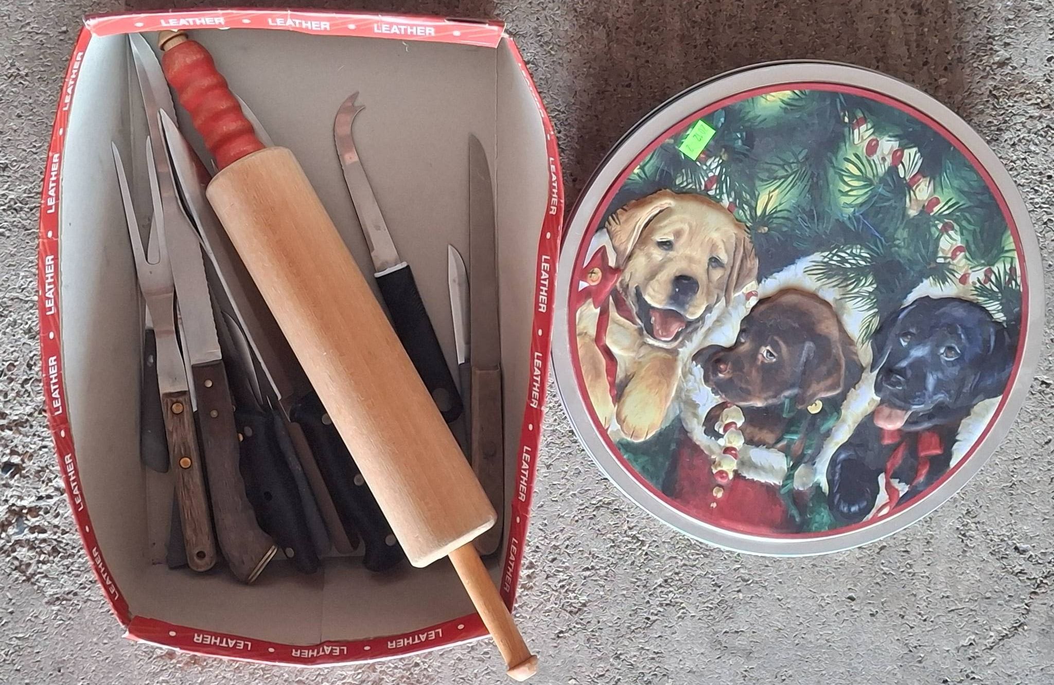 2012 Knives with Rolling Pin and Tin Box with Puppy Design