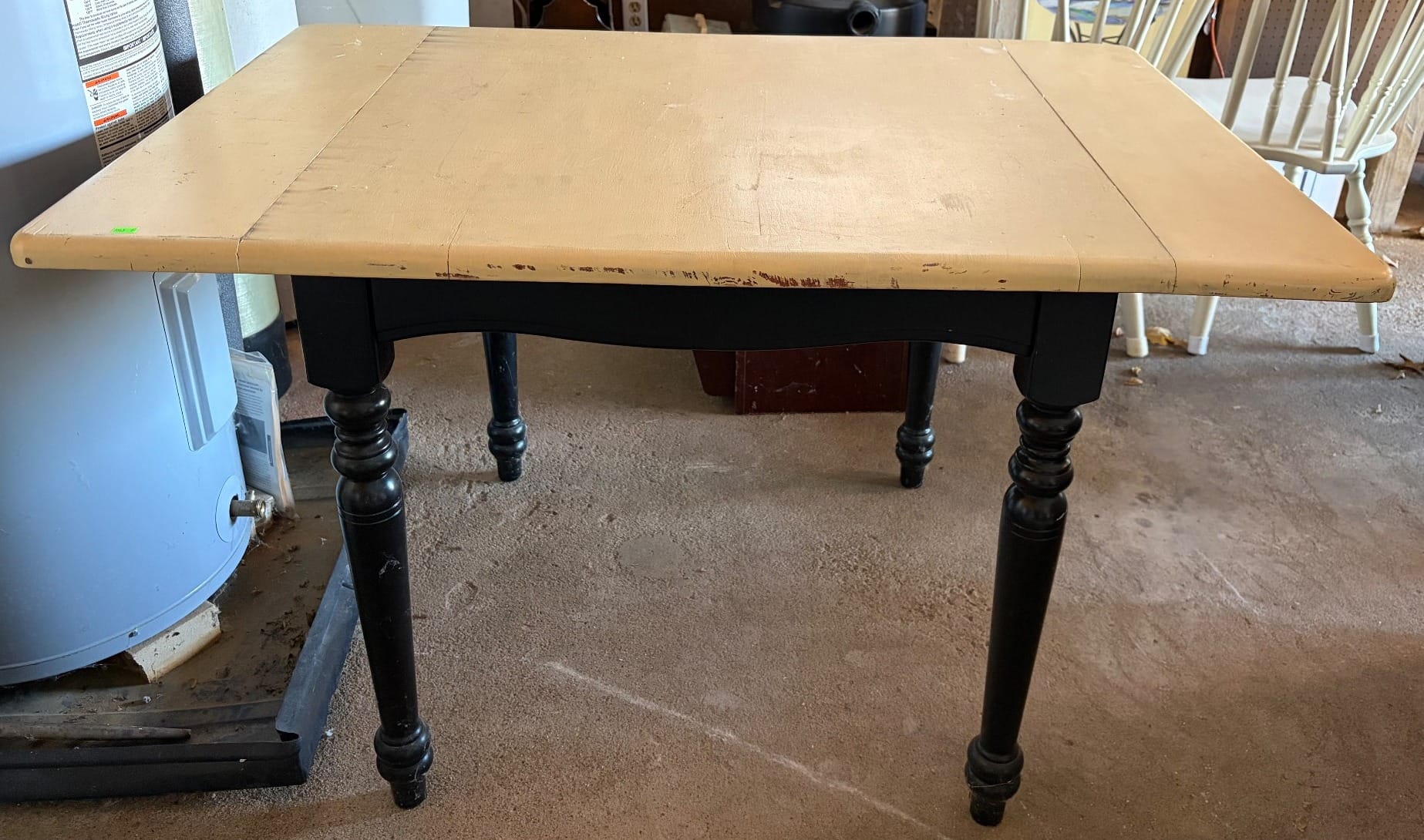 2033 Drop-Leaf Table with Painted Top and Turned Legs (shows wear) 48x32x30?