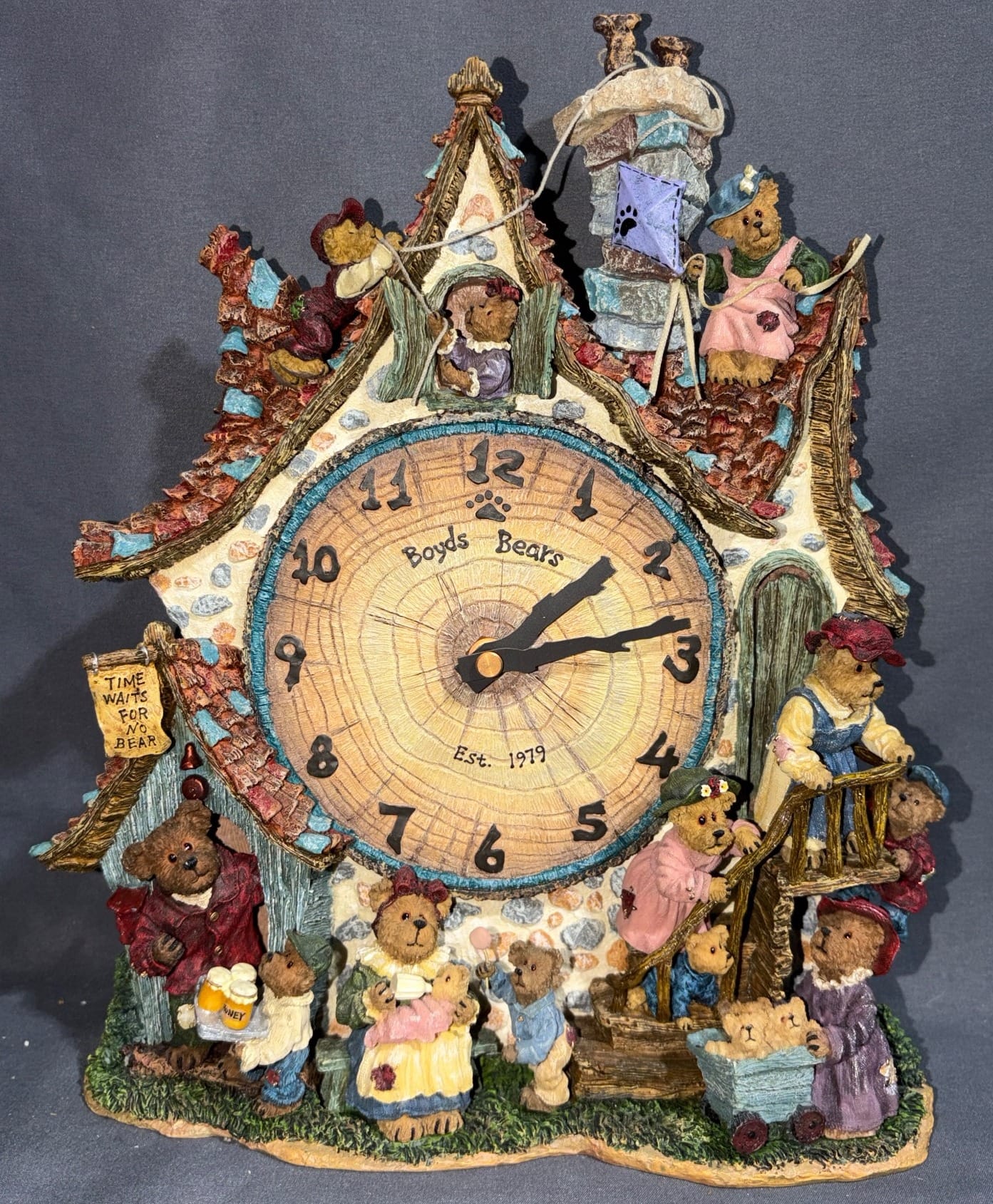 2041 Boyds Bears Collector Clock by The Danbury Mint, 11” x 9.5”