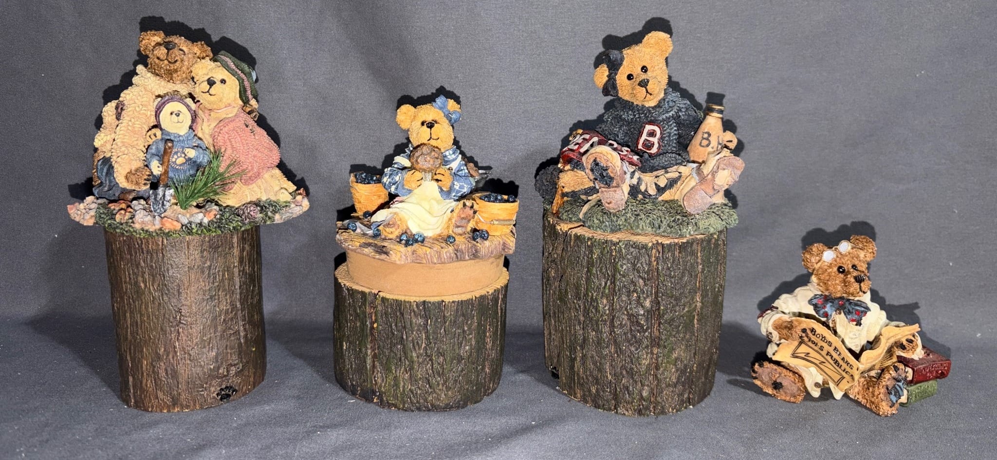 2045 4 Resin Bear Figurines on Rustic Bases by Boyd’s Bears
