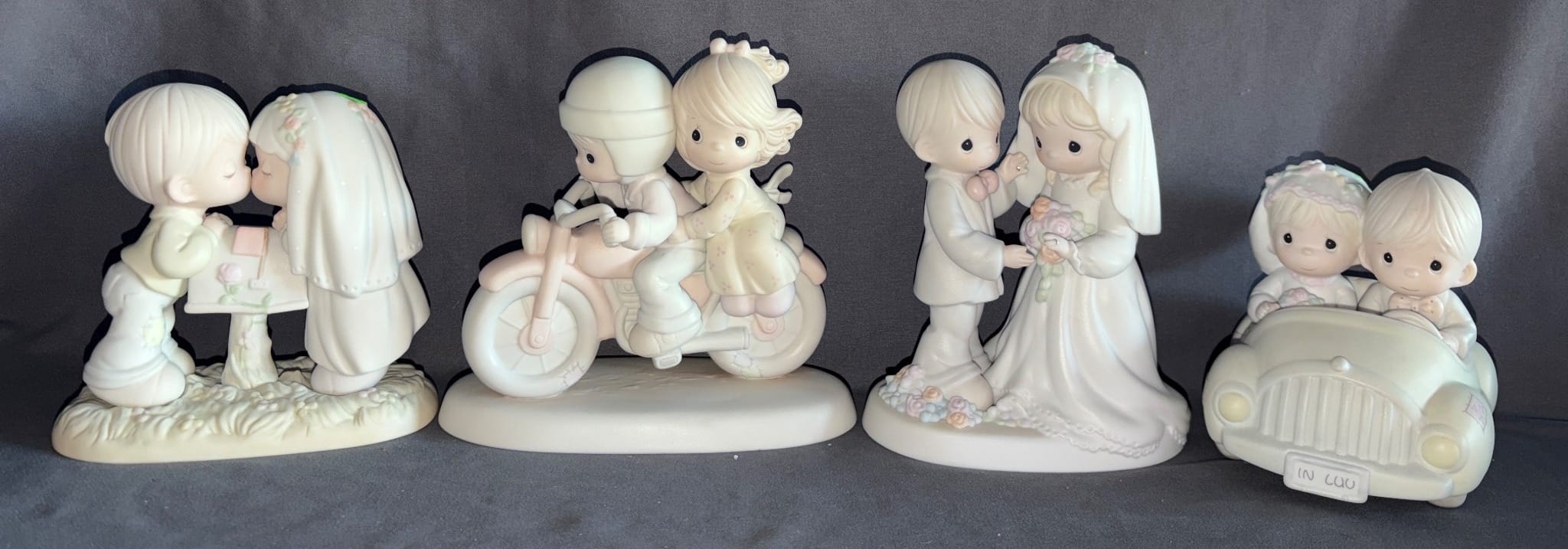 2068 4 Precious Moments Figurines with Wedding-Themed Designs, 4.5”-6.5” H