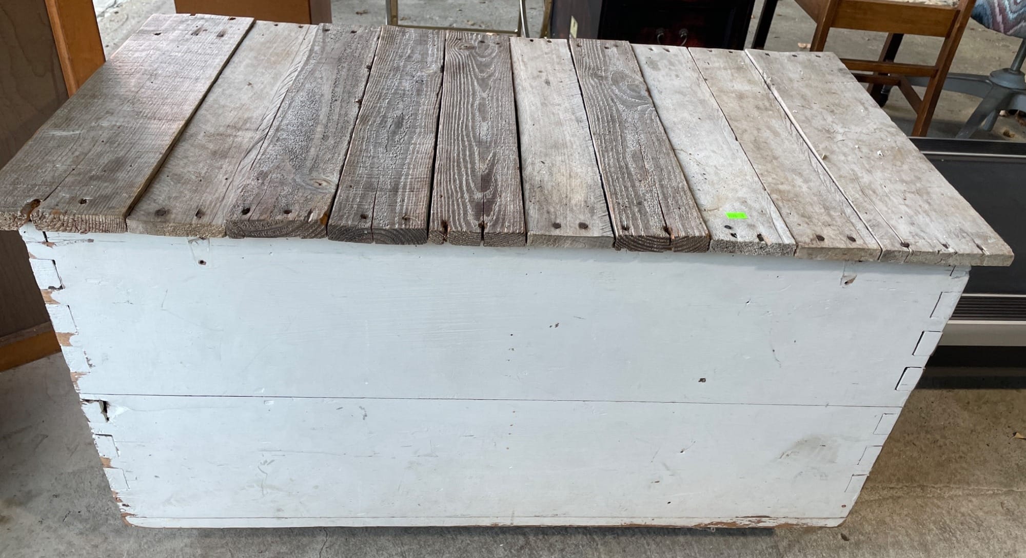 2076 White Wood Storage Box with Hinged Slatted Lid 36”x20”x23”