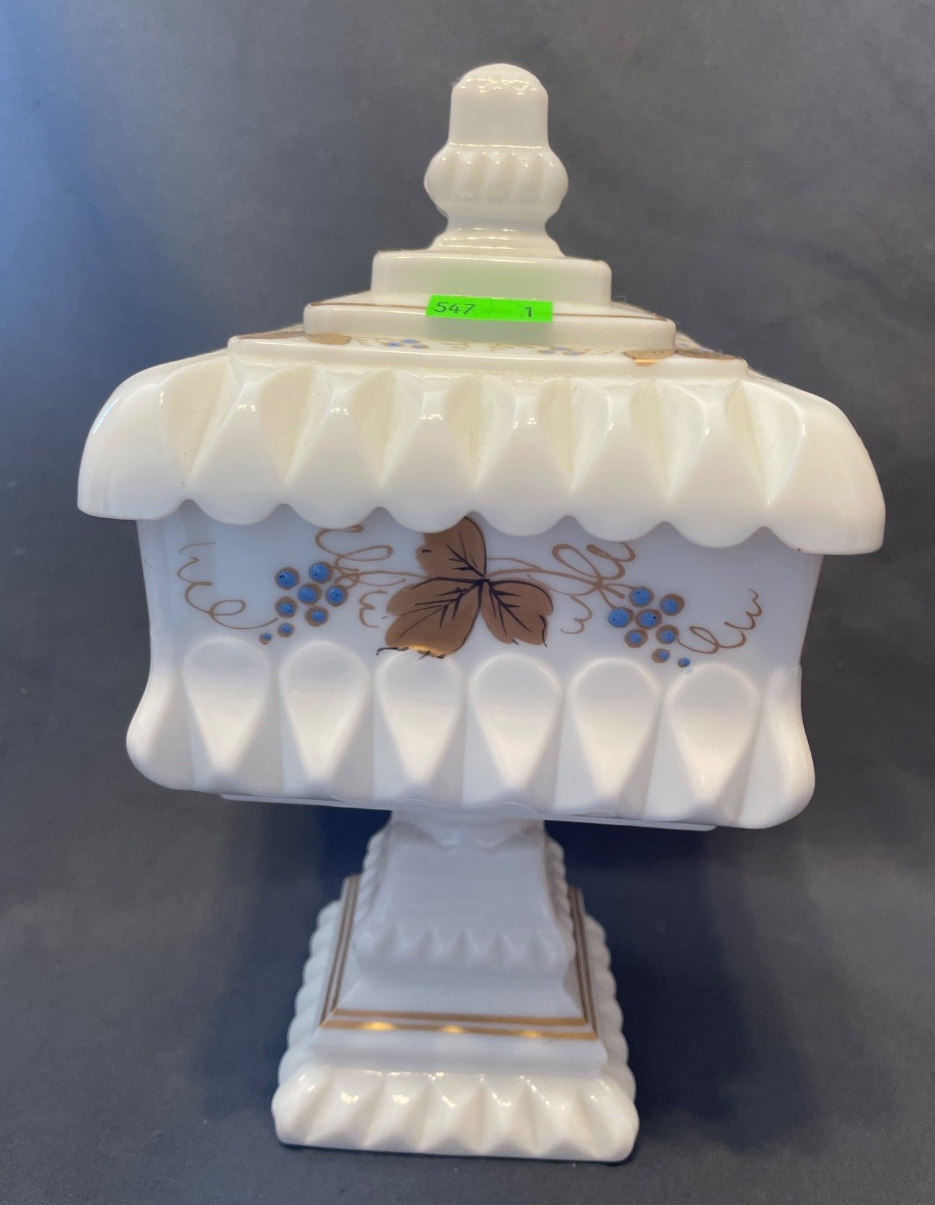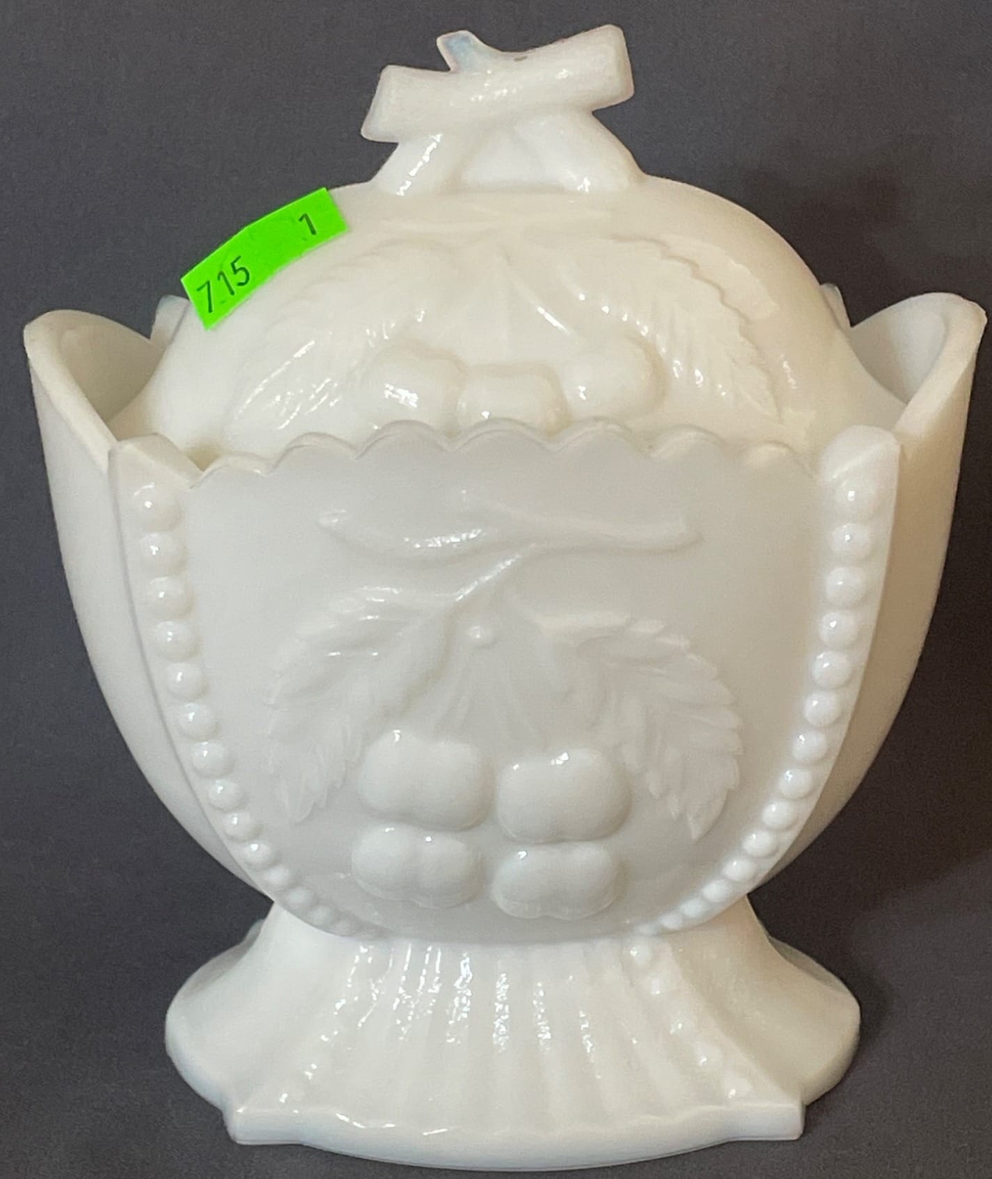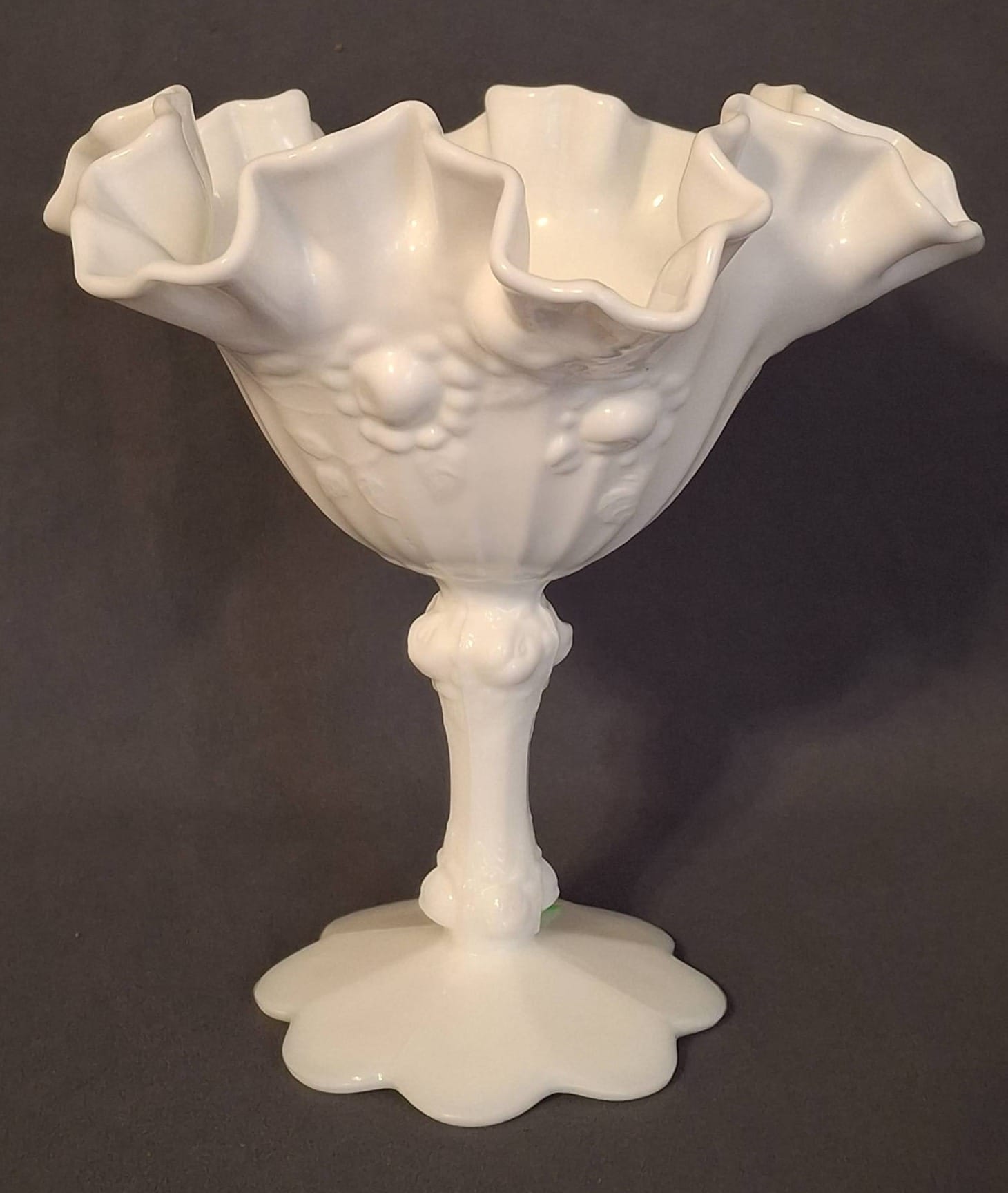 209 Fenton Milk Glass Cabbage Rose Compote, 7×7?