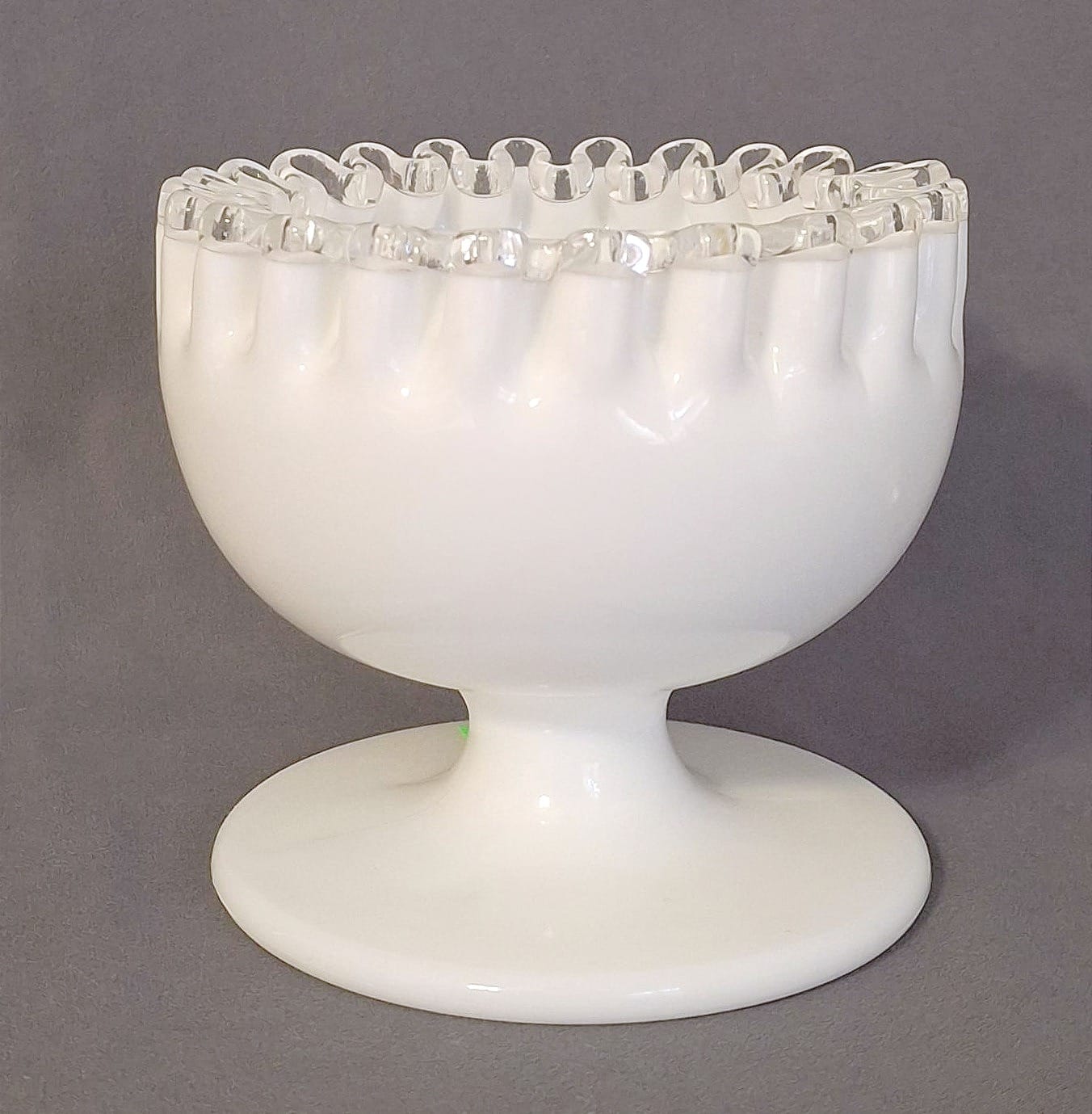 210 Fenton Silvercrest Glass Compote with Crimped Edge Design 5?x3.5?