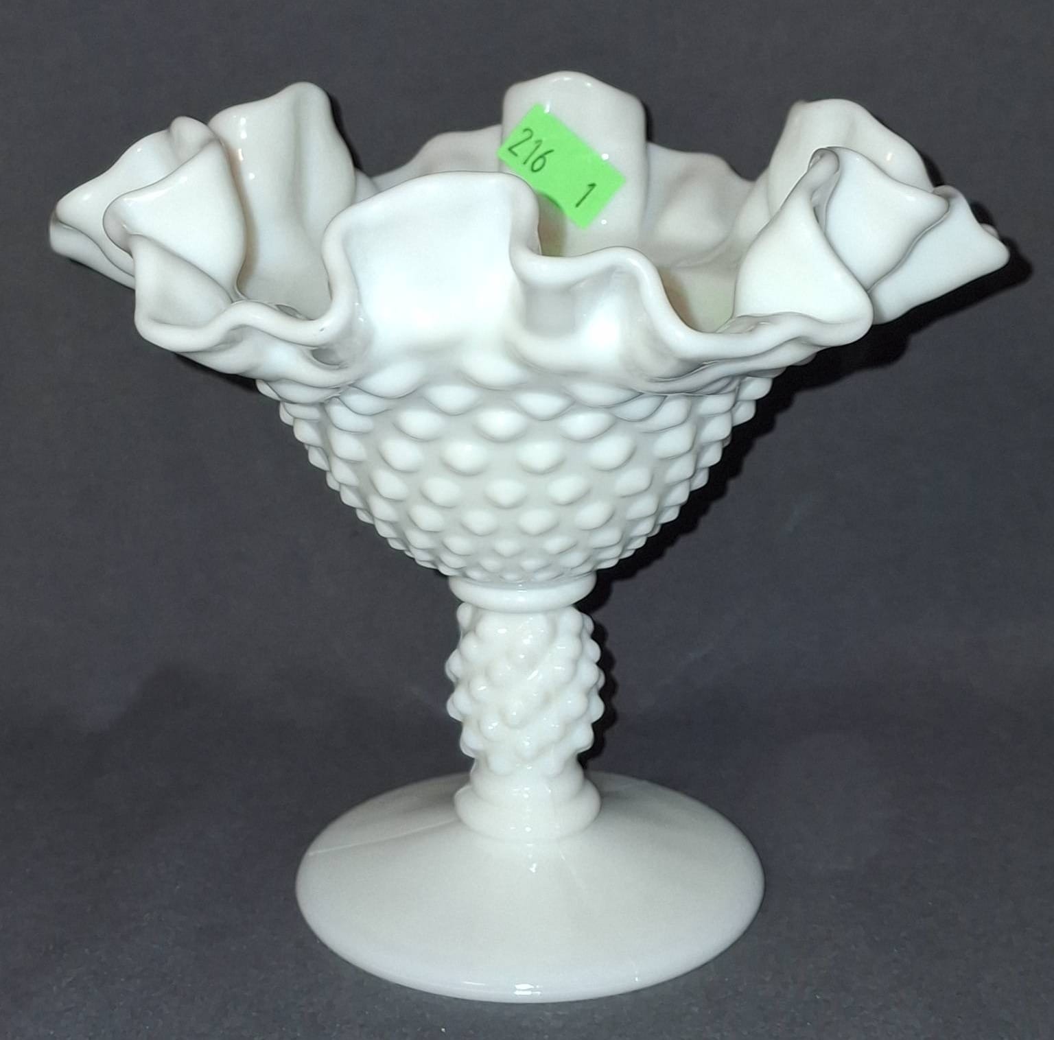 216 Fenton Milk Glass Hobnail Compote with Ruffled Rim, 6?