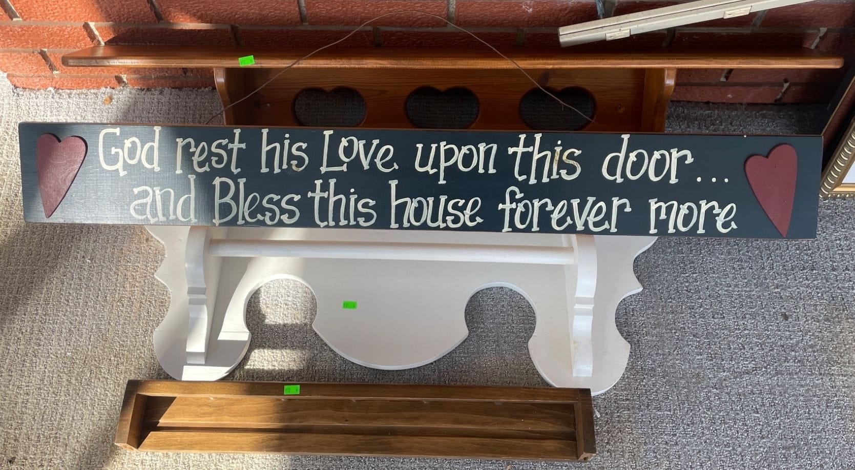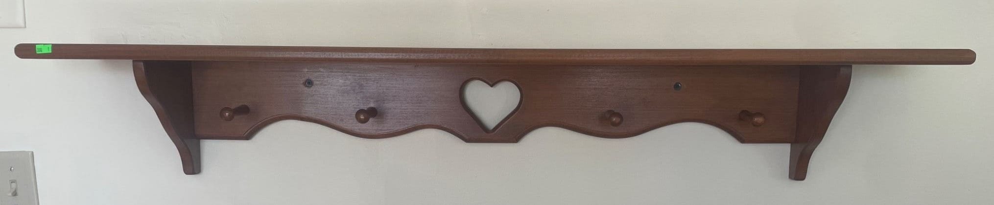 300 Wall-Mounted Shelf with Heart Cutout and 4 Peg Hooks 48”x8”x8”