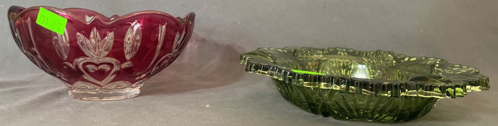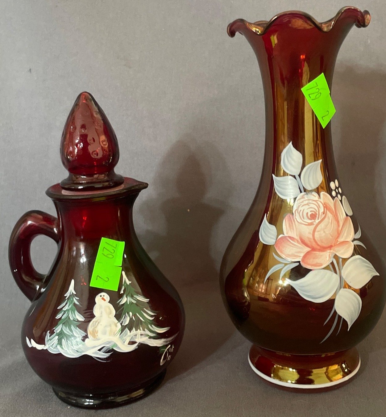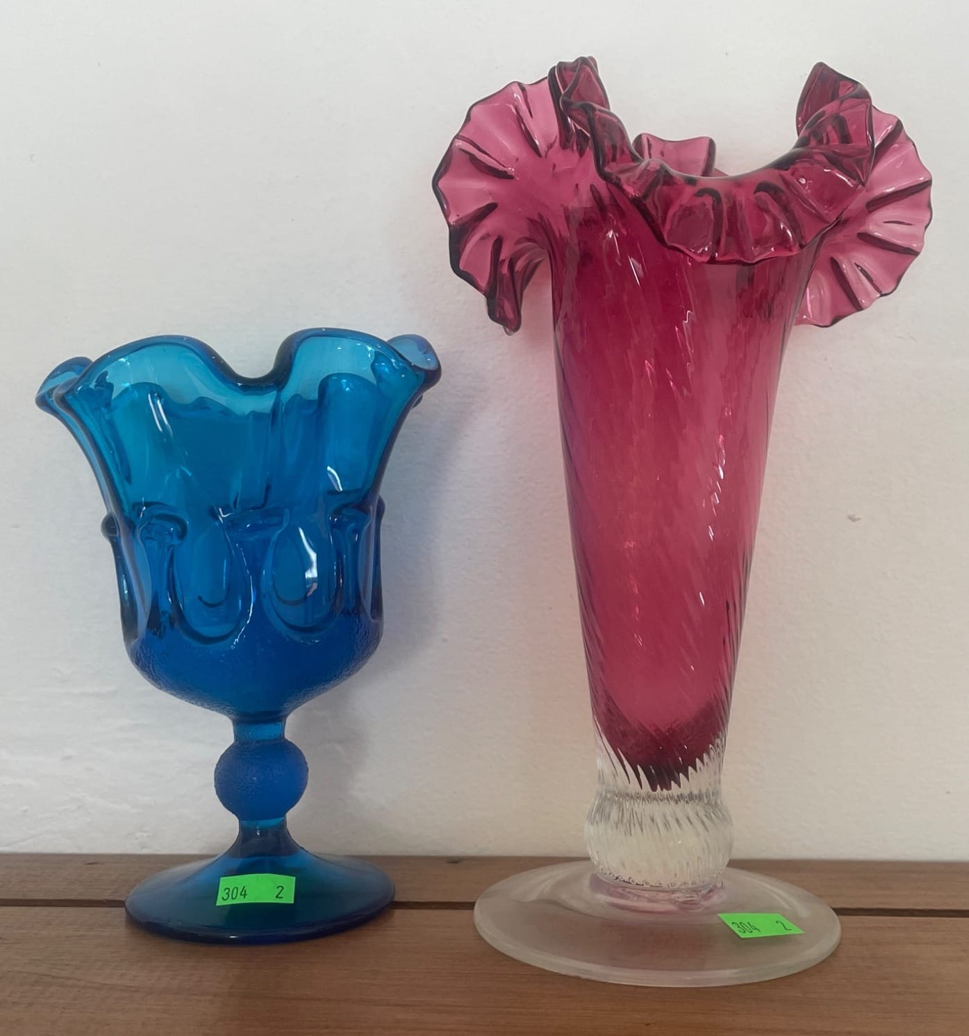 304 Cobalt Pedestal Vase and Cranberry Fluted Vase, 9”,6”